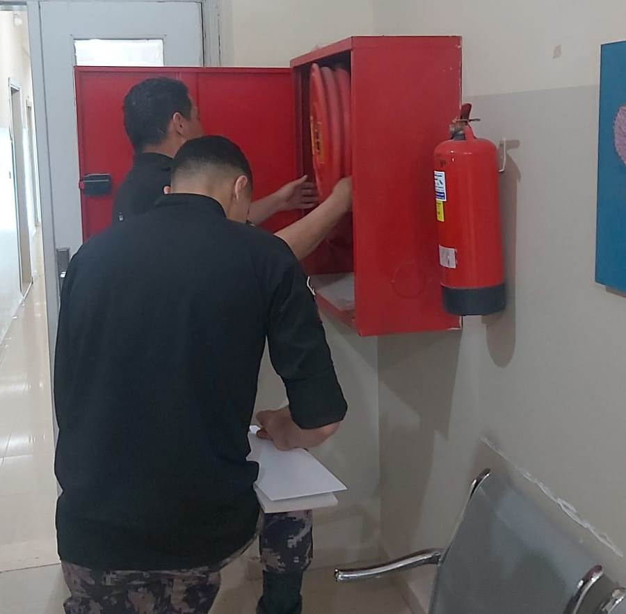 كما وتم الكشف على مخارج الطوارئ وصناديق الإطفاء وأجهزة الإطفاء اليدوية وتفقد لوحات الكهرباء الرئيسية والكشف على المصاعد الكهربائية فيها .
