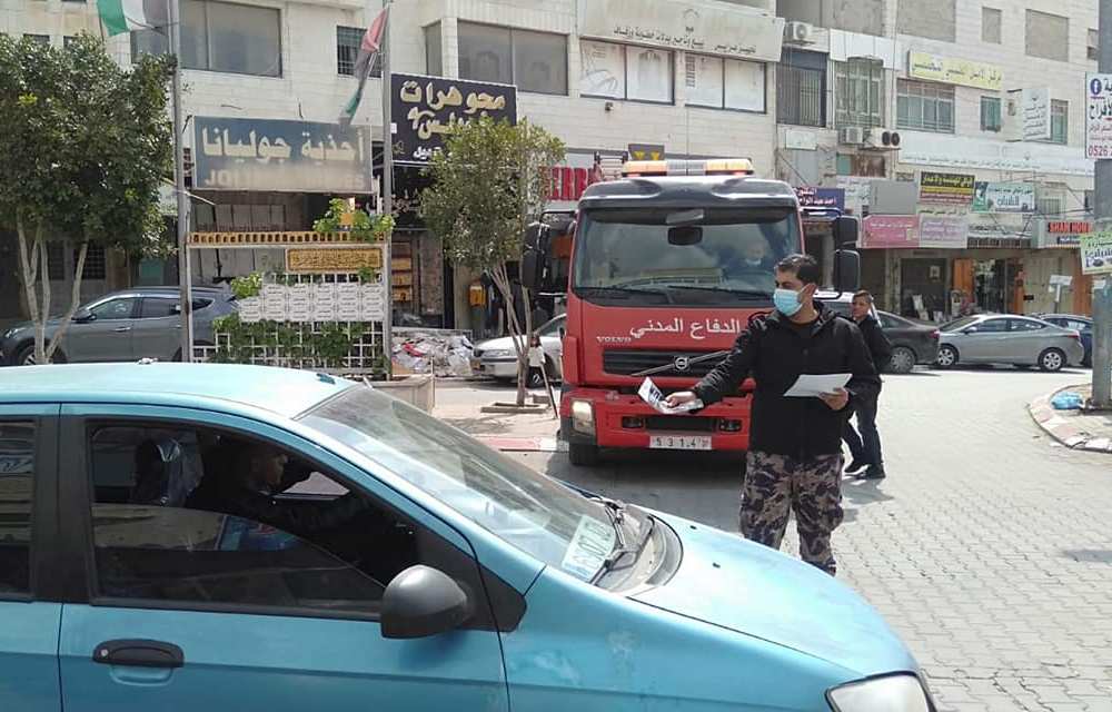 نفذت مديرية الدفاع المدني بمحافظة القدس اليوم الثلاثاء 02/03/2021 عدة جولات تفقدية لعدد من المحال التجارية في بلدة الرام وتوزيع بروروشورات توعوية على مفارق الطرق وعدد من المحال التجارية والمصانع تحت شعار ” التزامك بشروط السلامة والوقاية يضمن استقرار ونمو المنشآت الاقتصادية ” .