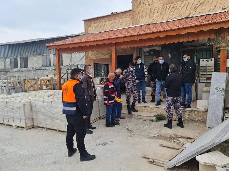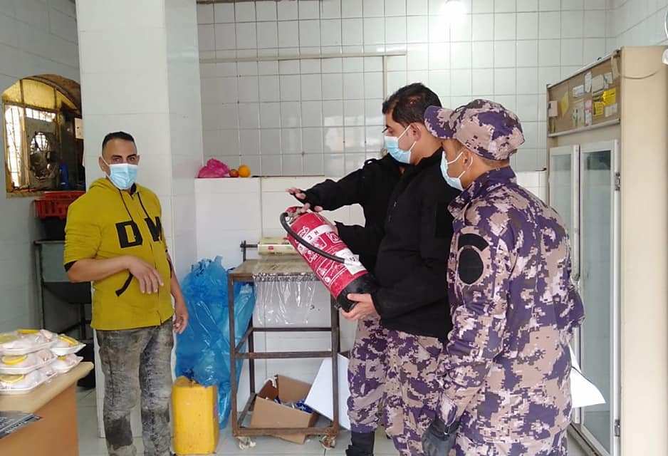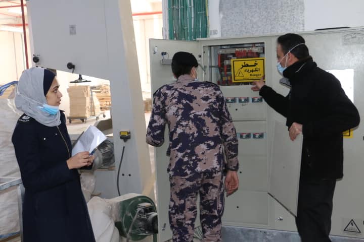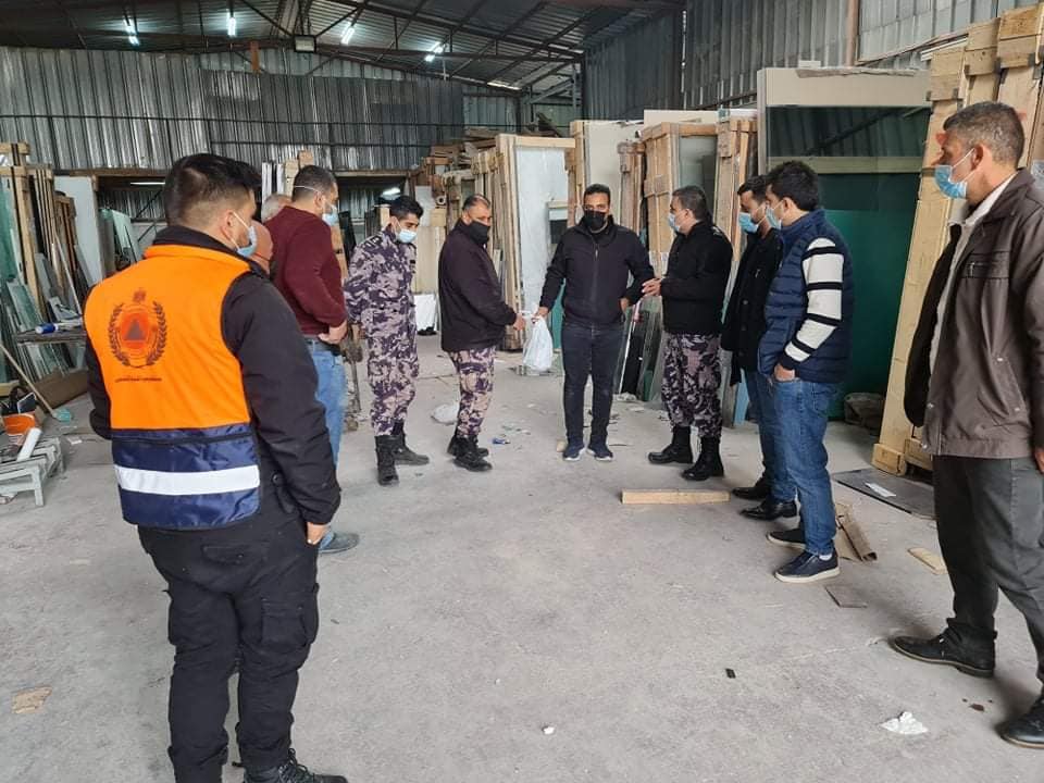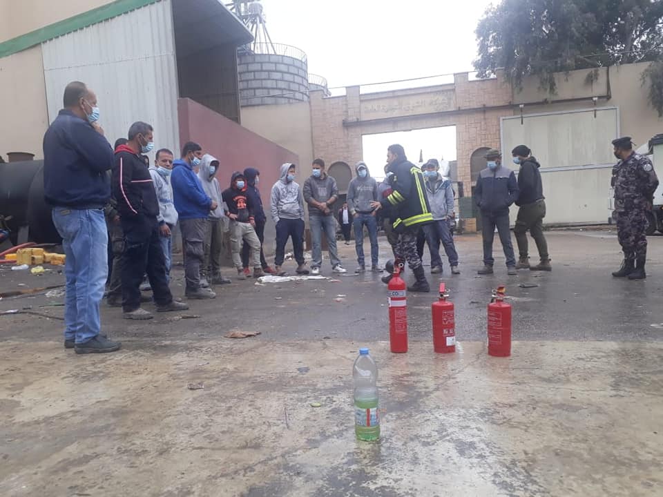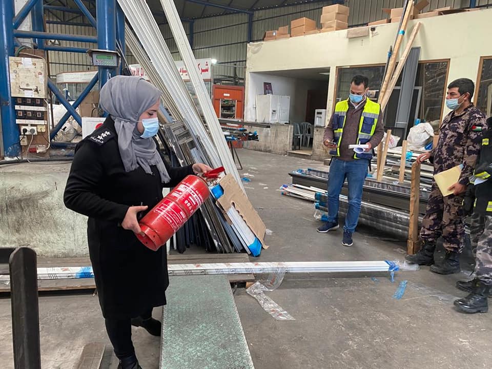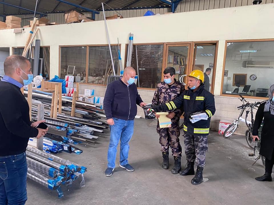 نفذت مديرية الدفاع المدني بمحافظة اريحا والاغوار اليوم الثلاثاء 09/03/2021 جولات تفقدية لعدد من المصانع والمنشآت في مدينة أريحا الصناعية وتم توزيع بروشورات توعوية على العاملين واصحاب المنشآت تحت شعار “التزامك بشروط السلامة والوقاية يضمن استقرار ونمو منشاتك الاقتصادية ” .
