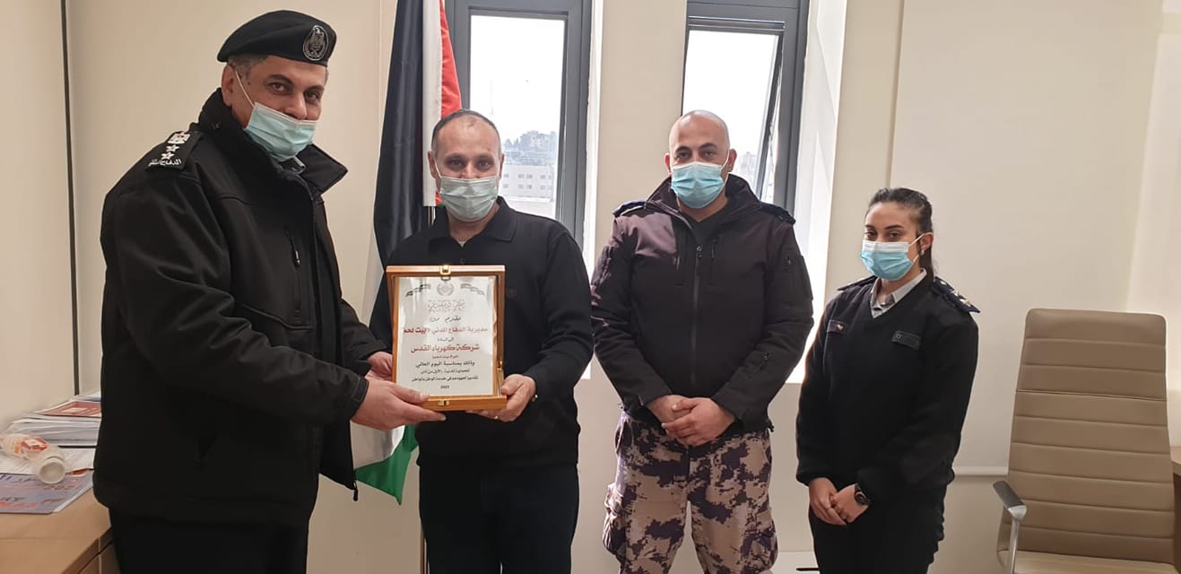 قام مسير الدفاع المدني في محافظة بيت لحم العقيد عمار سلامة والوفد المرافق له اليوم الثلاثاء الموافق 9/3/2021 بتقديم درع شكر وتقدير لمدير شركة كهرباء محافظة القدس فرع بيت لحم المهندس جواد ابو زر وذلك لتعاونهم وجهودهم المميزة في خدمة الوطن والمواطن .