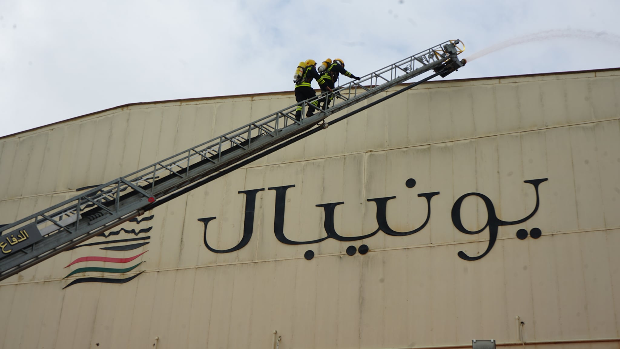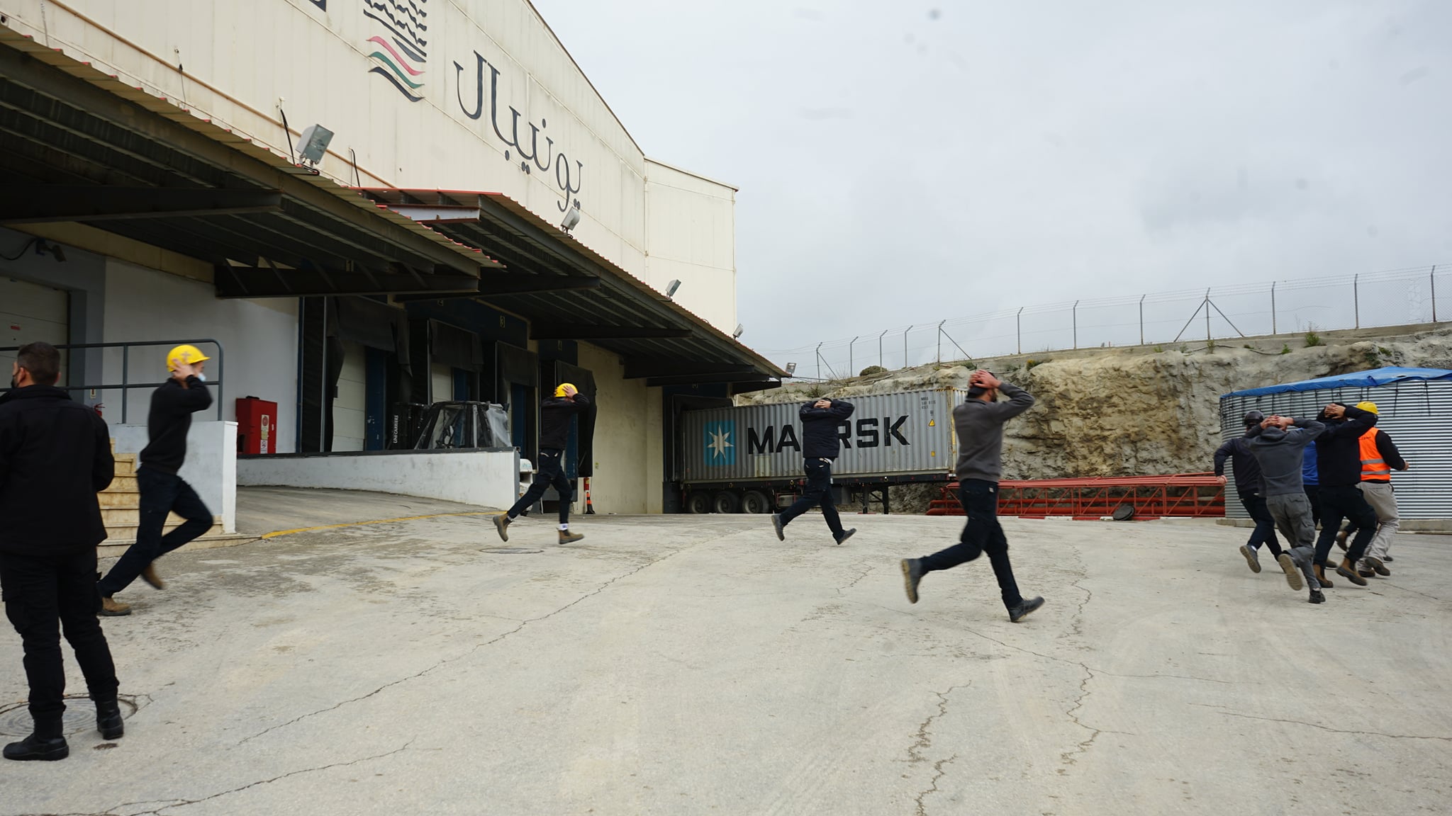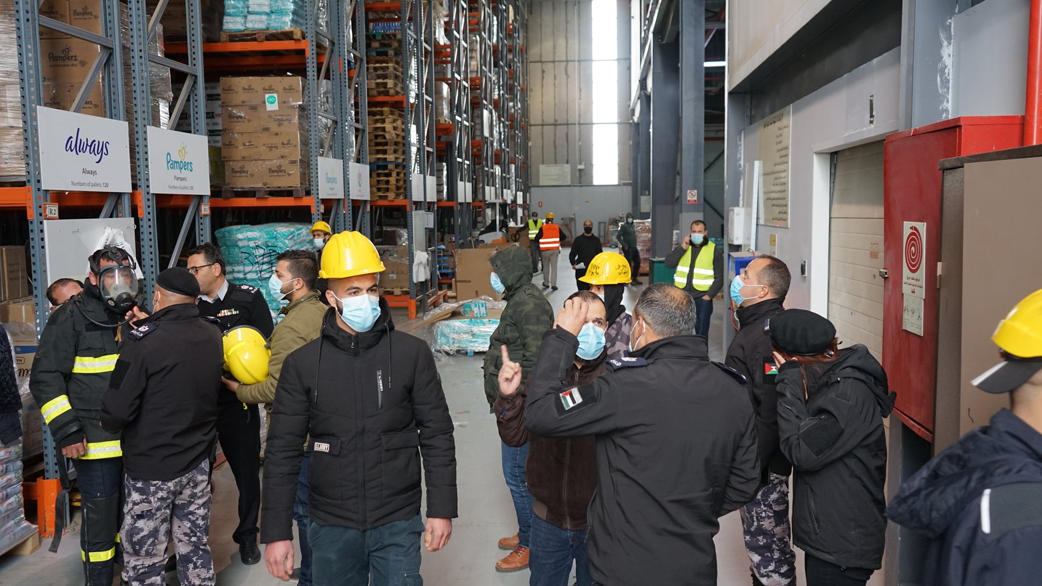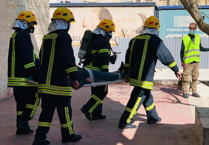 مناورة تدريبية في مستودعات شركة يونيبال بمحافظة رام الله والبيرة