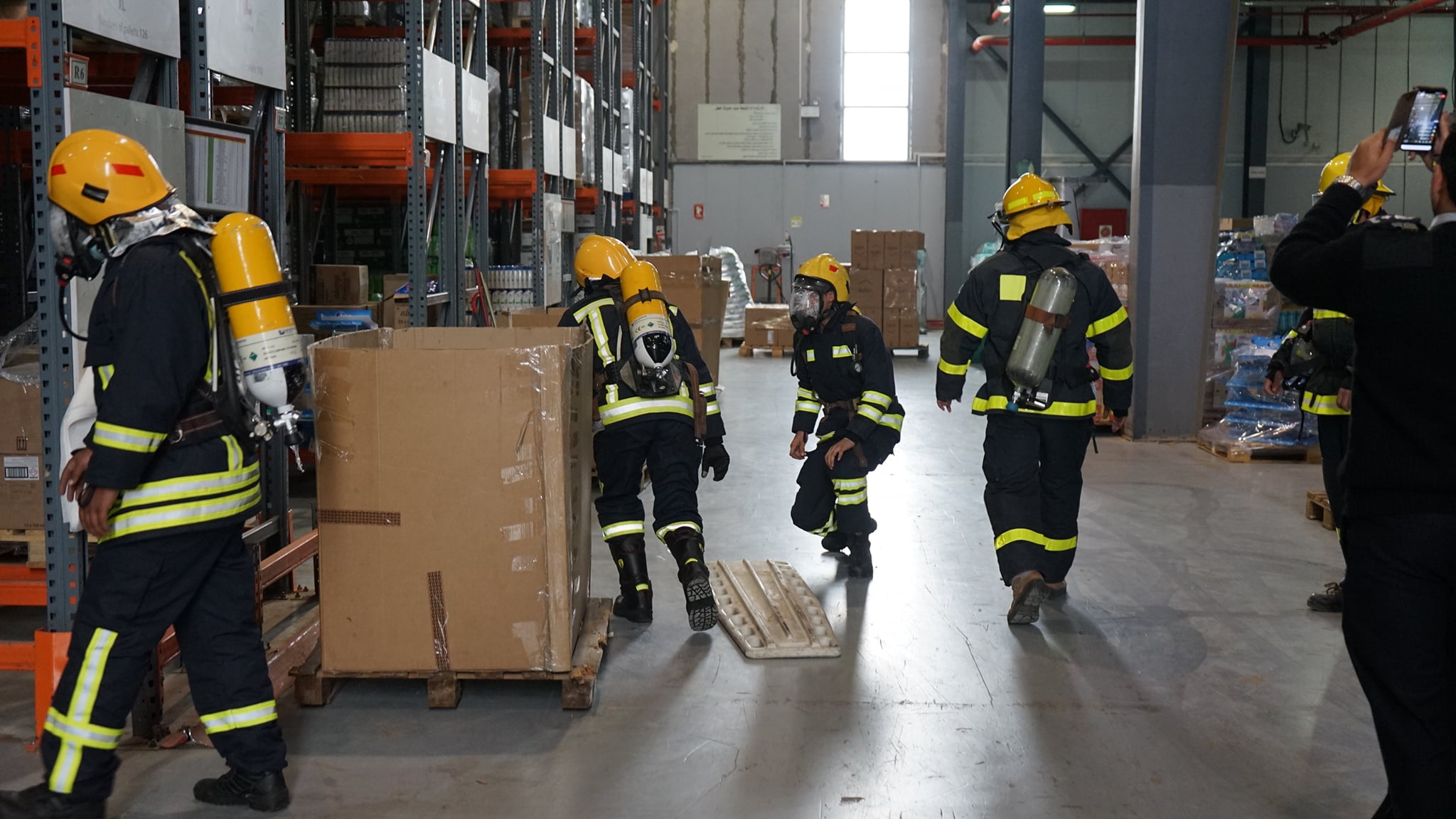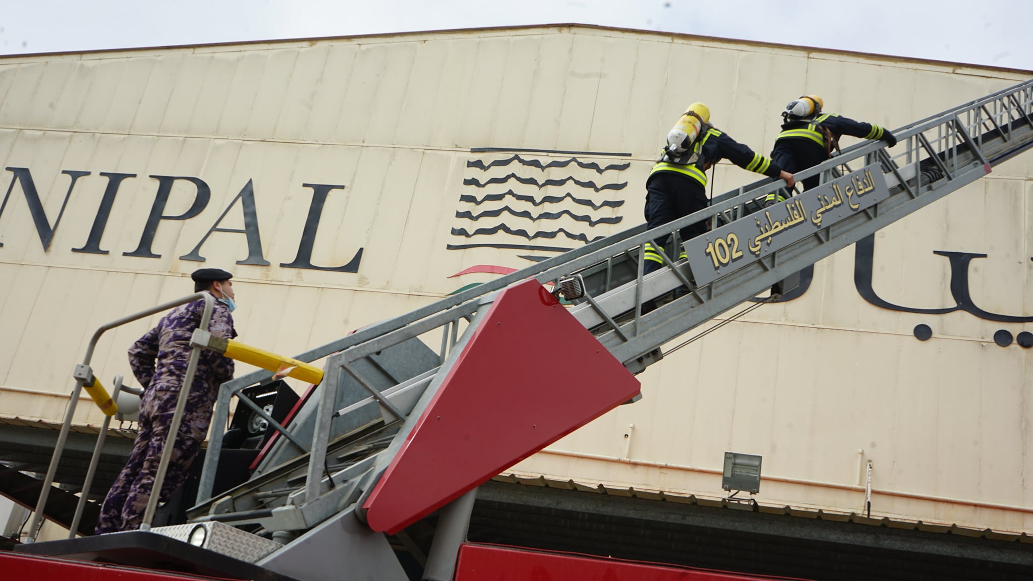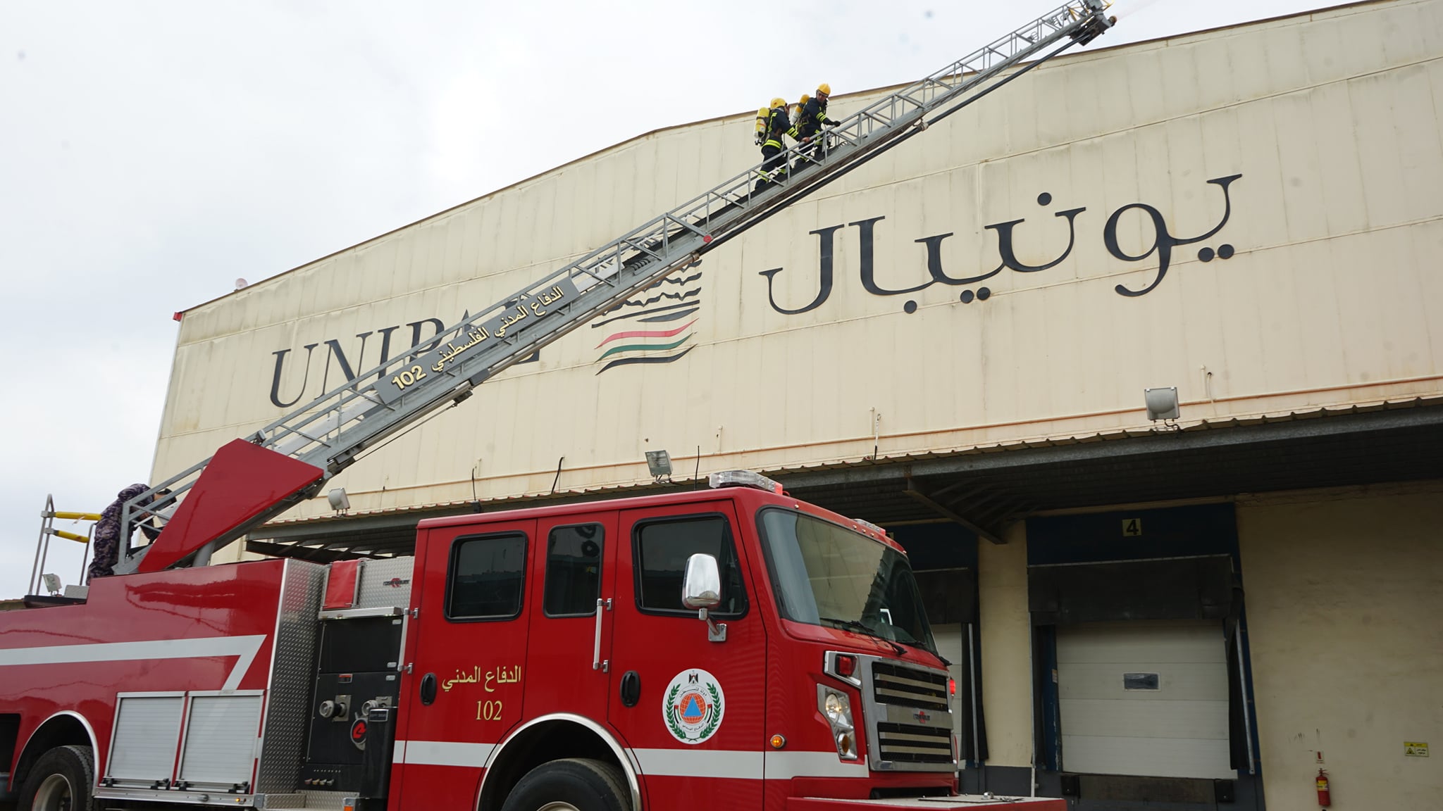 مناورة تدريبية في مستودعات شركة يونيبال بمحافظة رام الله والبيرة
