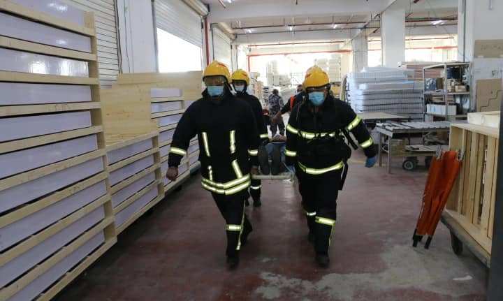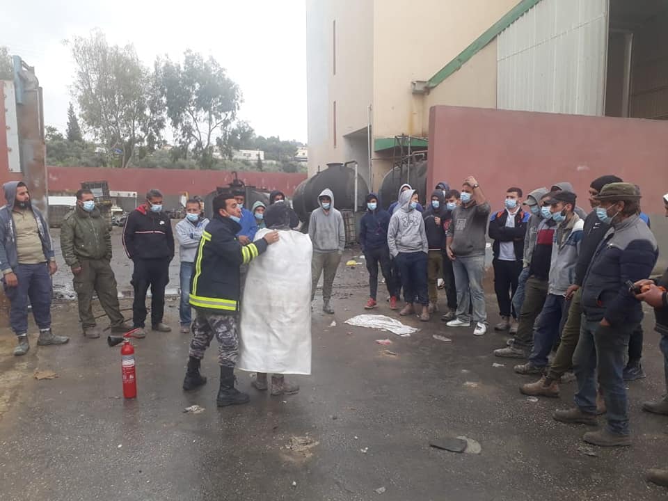 نفذت مديرية محافظة الخليل اليوم الاحد 7/3/2021 مناورة تدريبية في مصنع الحرباوي للاسفنج لفحص جاهزية لجنة الطوارئ بالمصنع والتأكد من فعالية اجراءات الوقاية المطبقة فيه .