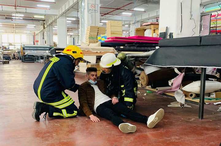 تنفيذ مناورة تدريبية في مصنع الحرباوي للاسفنج بالخليل
