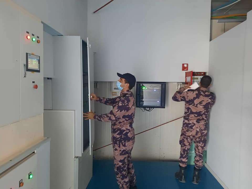 حيث كشفت الطواقم على مباني واقسام المصنع والذي يبلغ مساحته 80 دنم ويضم اكثر من 900 موظف وعامل و تم تفقد إجراءات ووسائل واشتراطات الوقاية والسلامة في الاقسام والتأكد من تطبيقها حيث سيتبع هذه الجولة فعاليات في نفس المصنع .