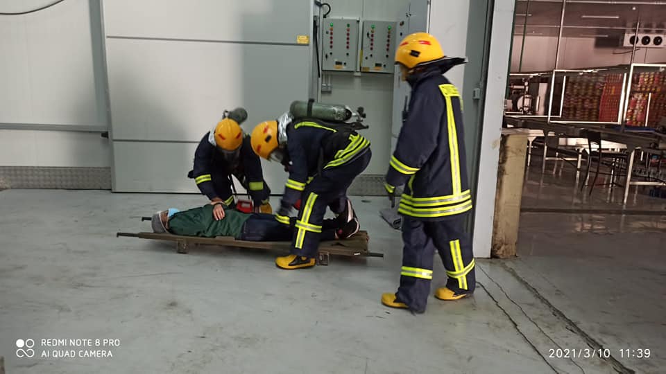 بمناسبة اليوم العالمي للدفاع المدني، وتحت شعار حماية مدنية قوية للحفاظ على الاقتصاد الوطني، نفذ موظفين وعاملين في شركة دواجن عزيزا، اليوم الخميس 4/3/2021 تمرين في مبنى الشركة، شملت محاكاة لعمليات اخلاء لمصابين وموظفين ناتج عن حدوث حريق لاحدى الماكنات داخل المبنى ونتج عنه عدة إصابات من موظفي الشركة تم التعامل معها من قبل لجنة الطوارئ في الشركة ، ومن خلال اشراف الدفاع المدني.