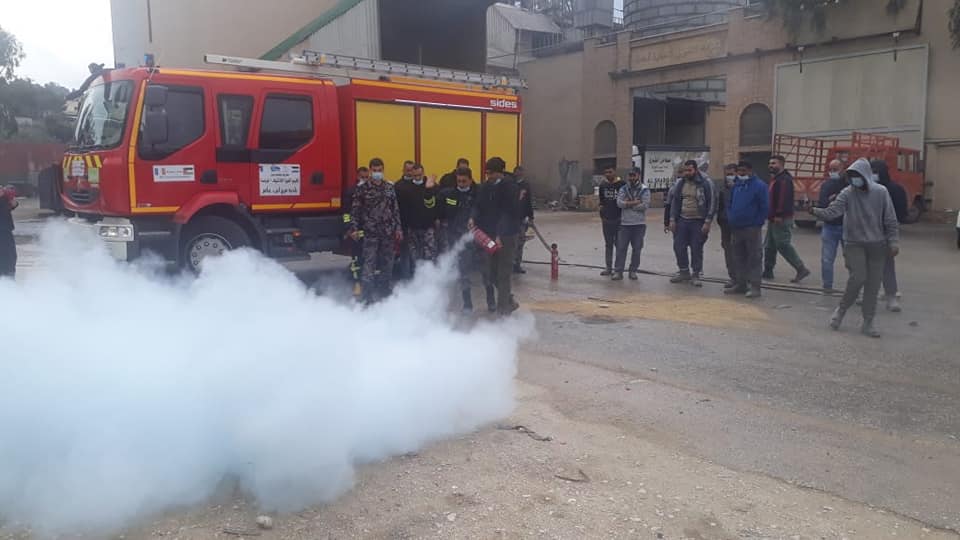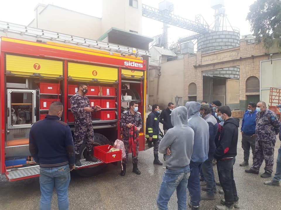 بمناسبة اليوم العالمي للدفاع المدني و تحت شعار ” حماية مدنية قوية للحفاظ على الاقتصاد الوطني ” نظمت مديرية الدفاع المدني في محافظة جنين اليوم محاضرة نظرية و عملية حول علوم الدفاع المدني للعاملين في مصنع مطاحن الشرق بجنين , وذلك ضمن خطة الدفاع المدني للاستثمار في السلامة العامة و رفع قدرة الكادر البشري في التعامل السليم مع حالات الطوارئ , فقد تم تقديم شرح مفصل حول انواع اجهزة الاطفاء اليدوية وكيفية استخدامها خلال مكافحة الحرائق , كما تم استعراض معدات مركبة الاطفاء والانقاذ والتعرف على معداتها وكيفية استخدامها في حالات الطوارئ .