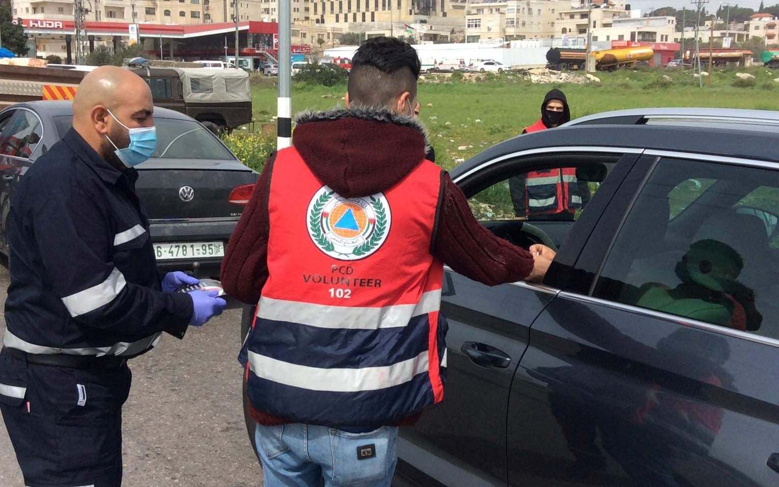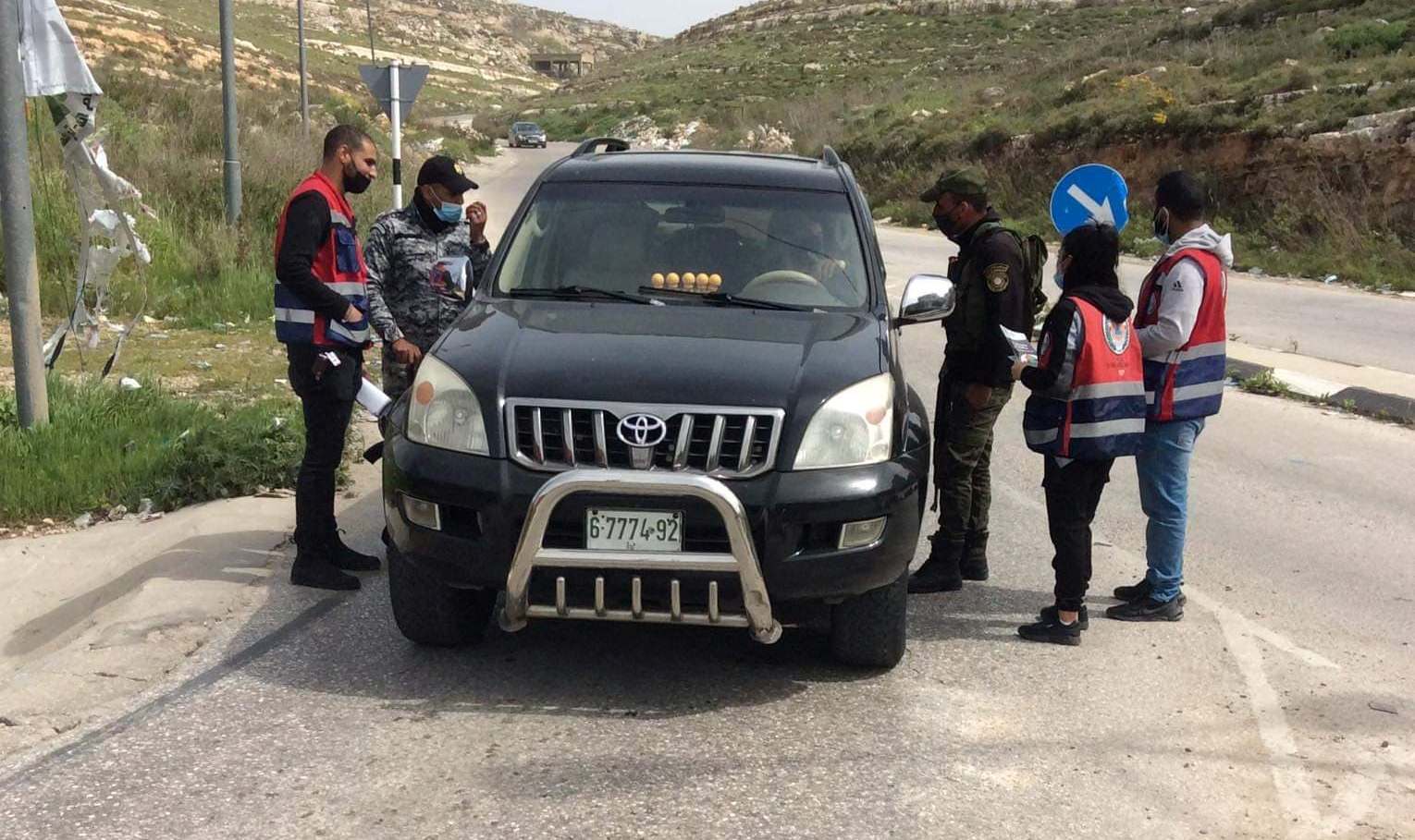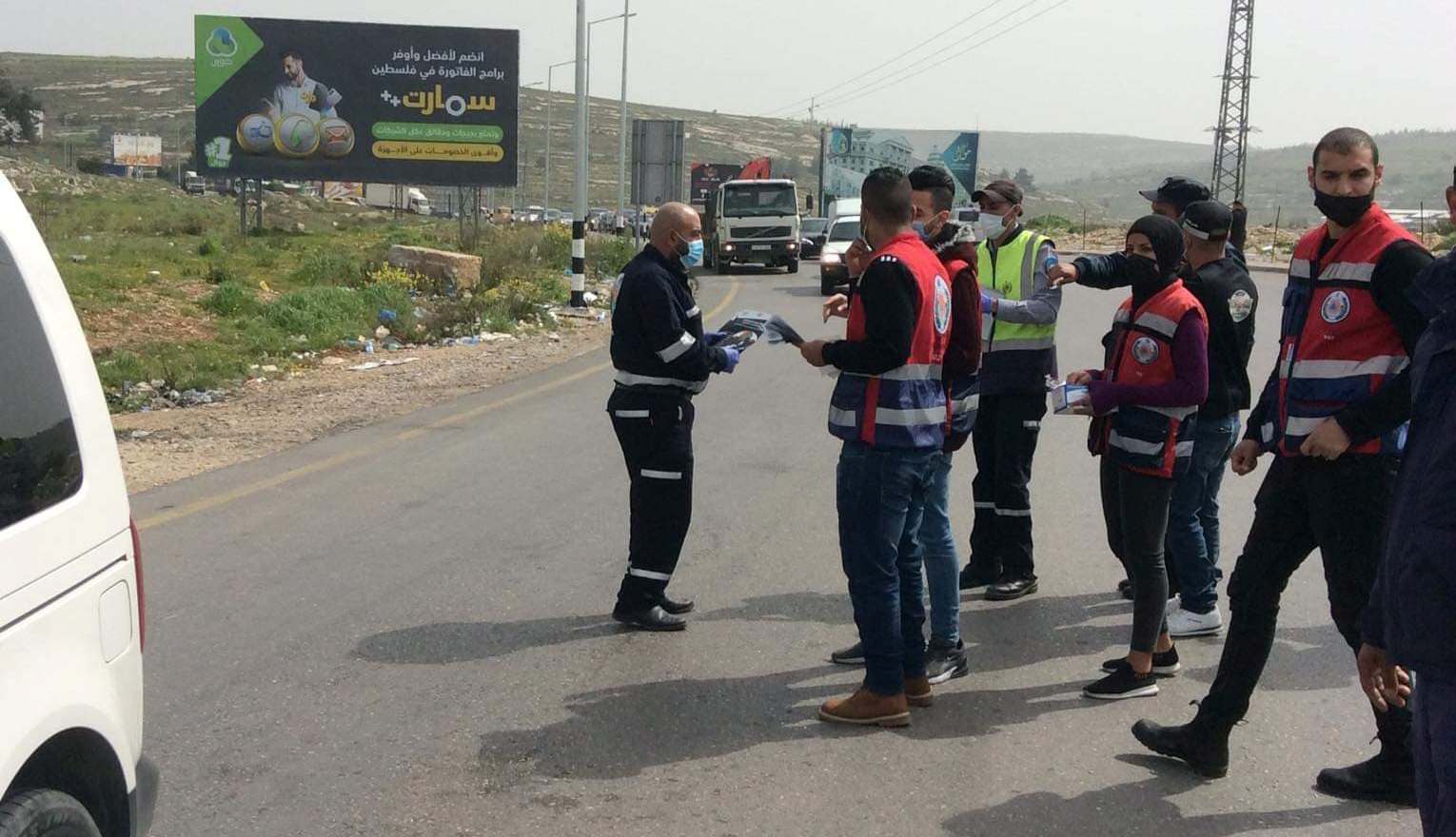 توزيع بروشورات توعية وكمامات على حواجز المحبة شمال رام الله والبيرة