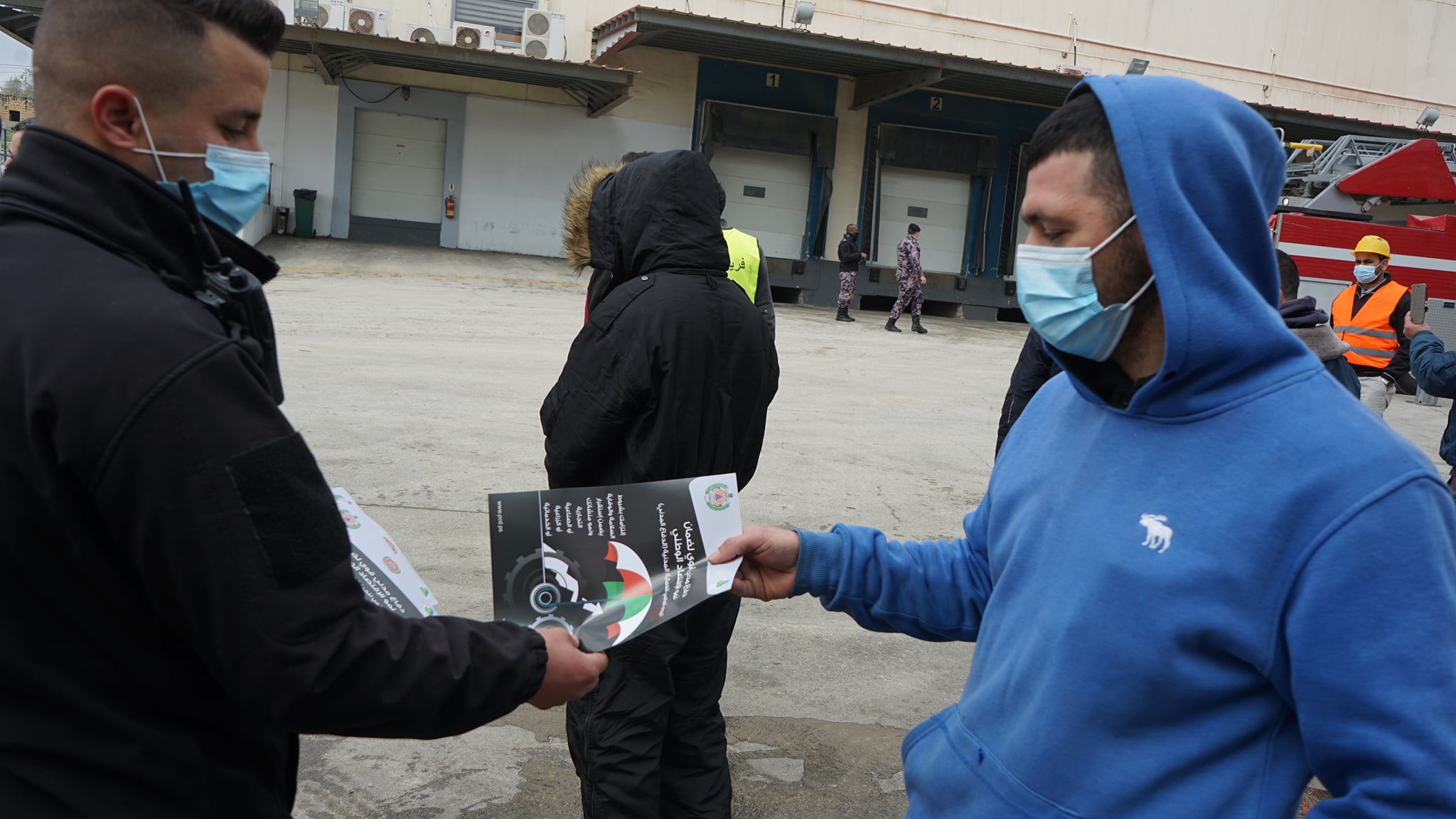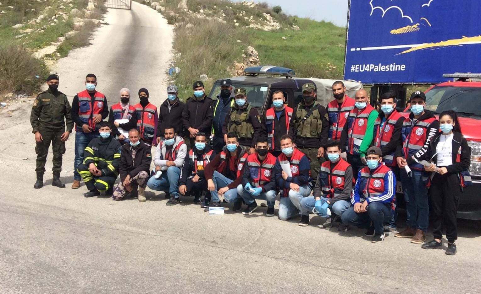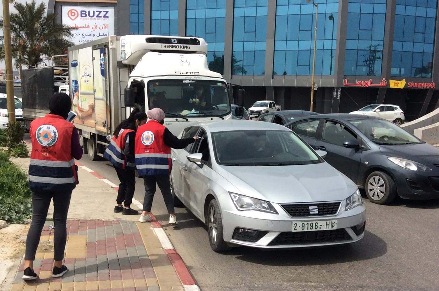 توزيع بروشورات توعية وكمامات على حواجز المحبة شمال رام الله والبيرة