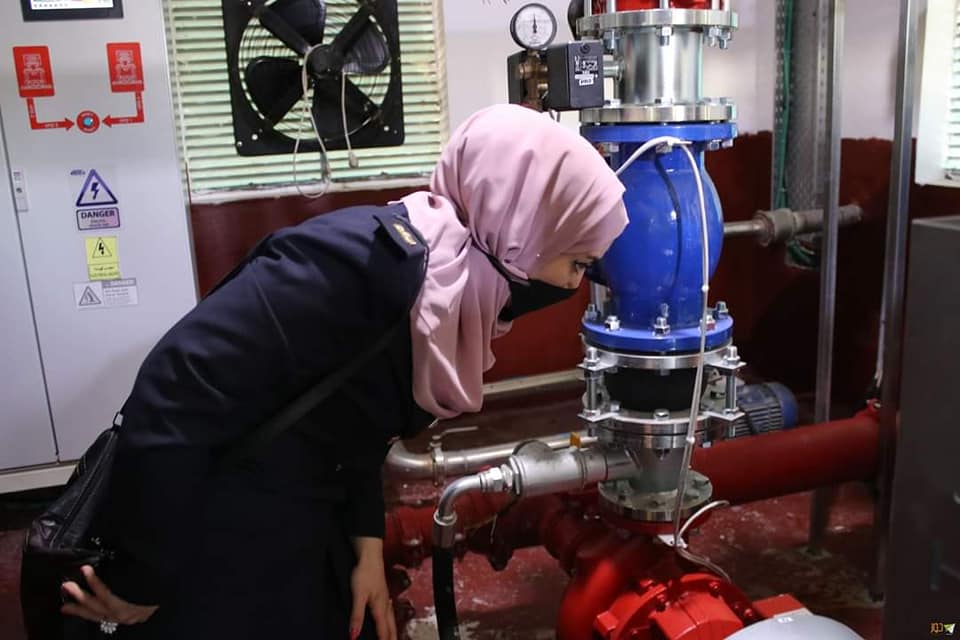 وتفقد الطاقم المعدات الصناعية وشروط السلامة من اسطوانات إطفاء يدوية ولوحات الكهرباء وانظمة الاطفاء التلقائي .
