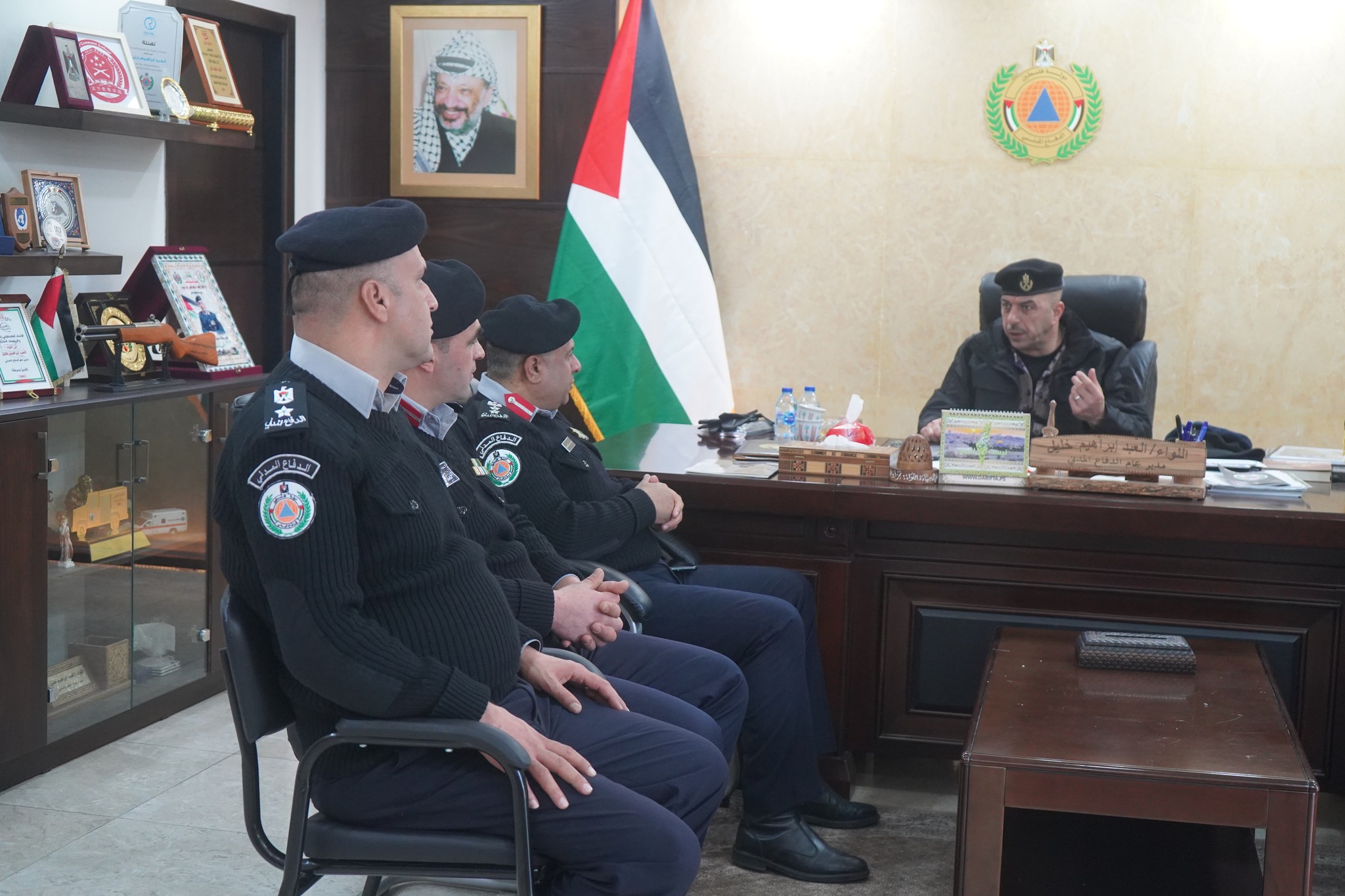 إستقبل مدير عام الدفاع المدني اللواء العبد إبراهيم خليل في مكتبه اليوم الأحد 28/1/2024 ، ضباط الدفاع المدني في محافظة بيت لحم للإطلاع على آلية عمل الطواقم خلال المنخفضات الجوية في المحافظة .