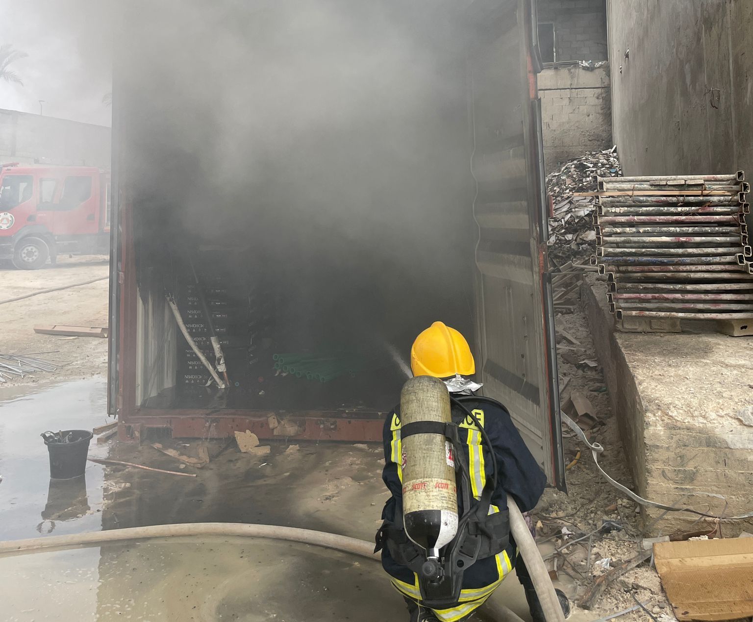 إخماد حريق كونتينر تخزين أجهزة تكييف في ضاحية بوابة أريحا .