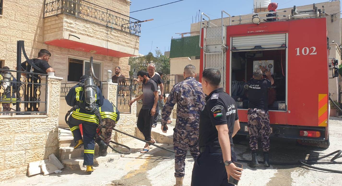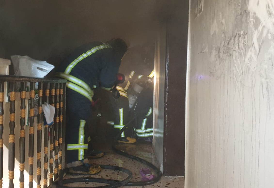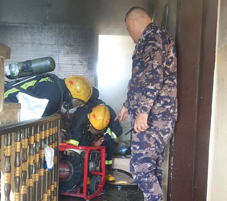 عملت الطواقم من إخماد النيران المشتعلة في المنزل بالدور الثاني وحصرها داخل غرفة نوم والسيطرة عليها والحد من إمتدادها ووصولها لباقي المنزل إضافة لحماية الممتلكات وتهوية وتفقد المنزل .