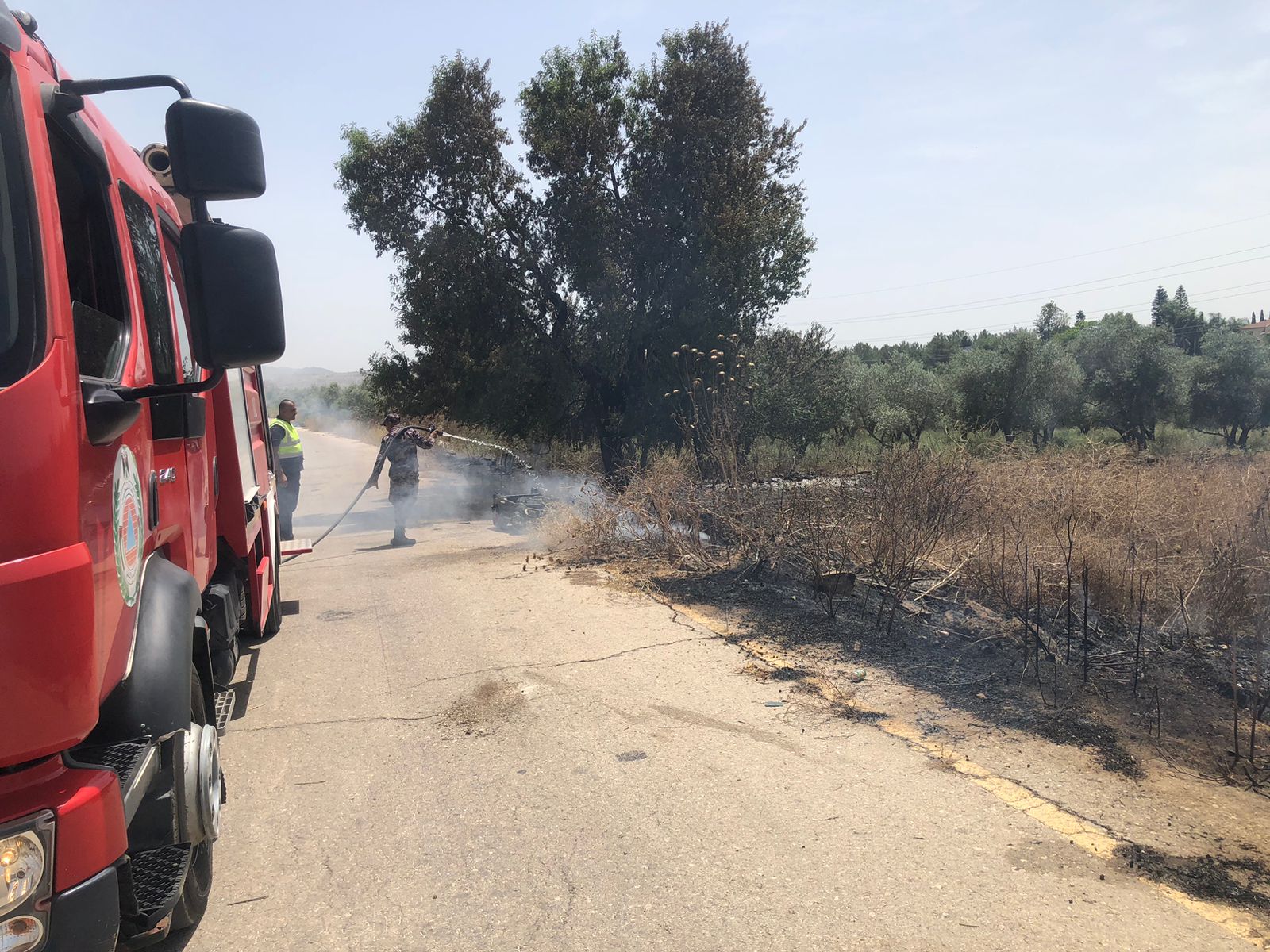 إخماد أربعة حرائق مركبات كانت في محافظات جنين والخليل وبيت لحم منها إخماد حريق ثلاثة مركبات في بلدة كفر دان غرب جنين .