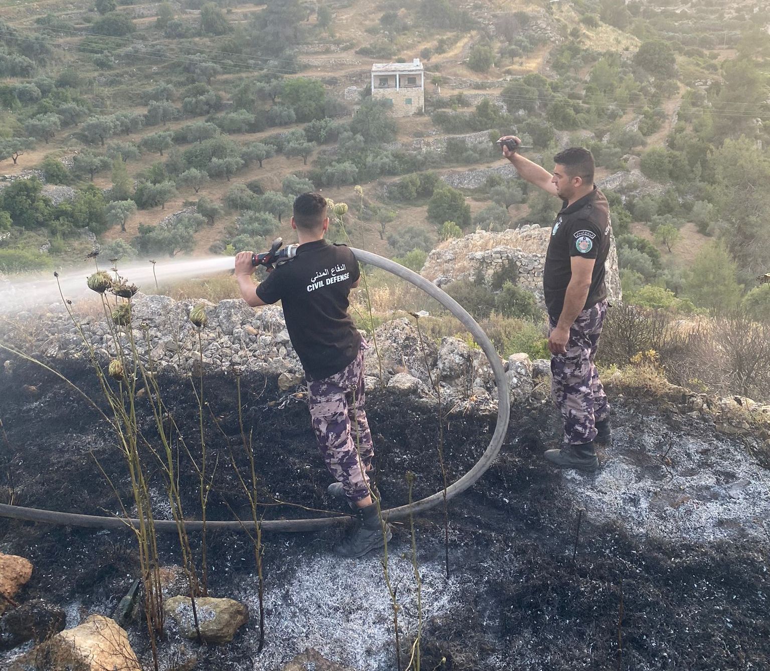 عملت الطواقم على إخماد الحرائق وحصرها والحد من إمتداها وحماية الأراضي الزراعية وممتلكات المواطنين في مواقع الحرائق .