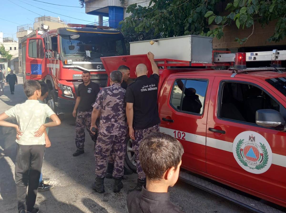إخماد حريق منزلين كانت في مخيم عقبة جبر جنوب أريحا وبلدة برقا شمال غرب نابلس .