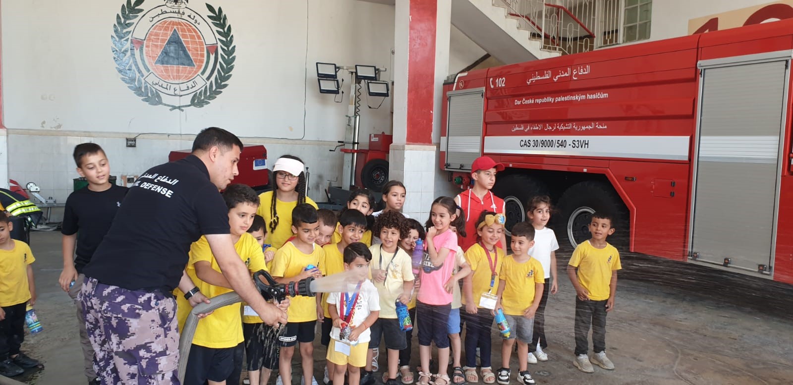 استقبلت مديرية محافظة بيت لحم اليوم الثلاثاء 2/7/2024 ، مخيم صيفي التفوق والتميز الذي نظم زيارة لمديرية المحافظة وذلك للتعرف على المهام والمعدات ومنحهم إرشادات وقاية وسلامة .
