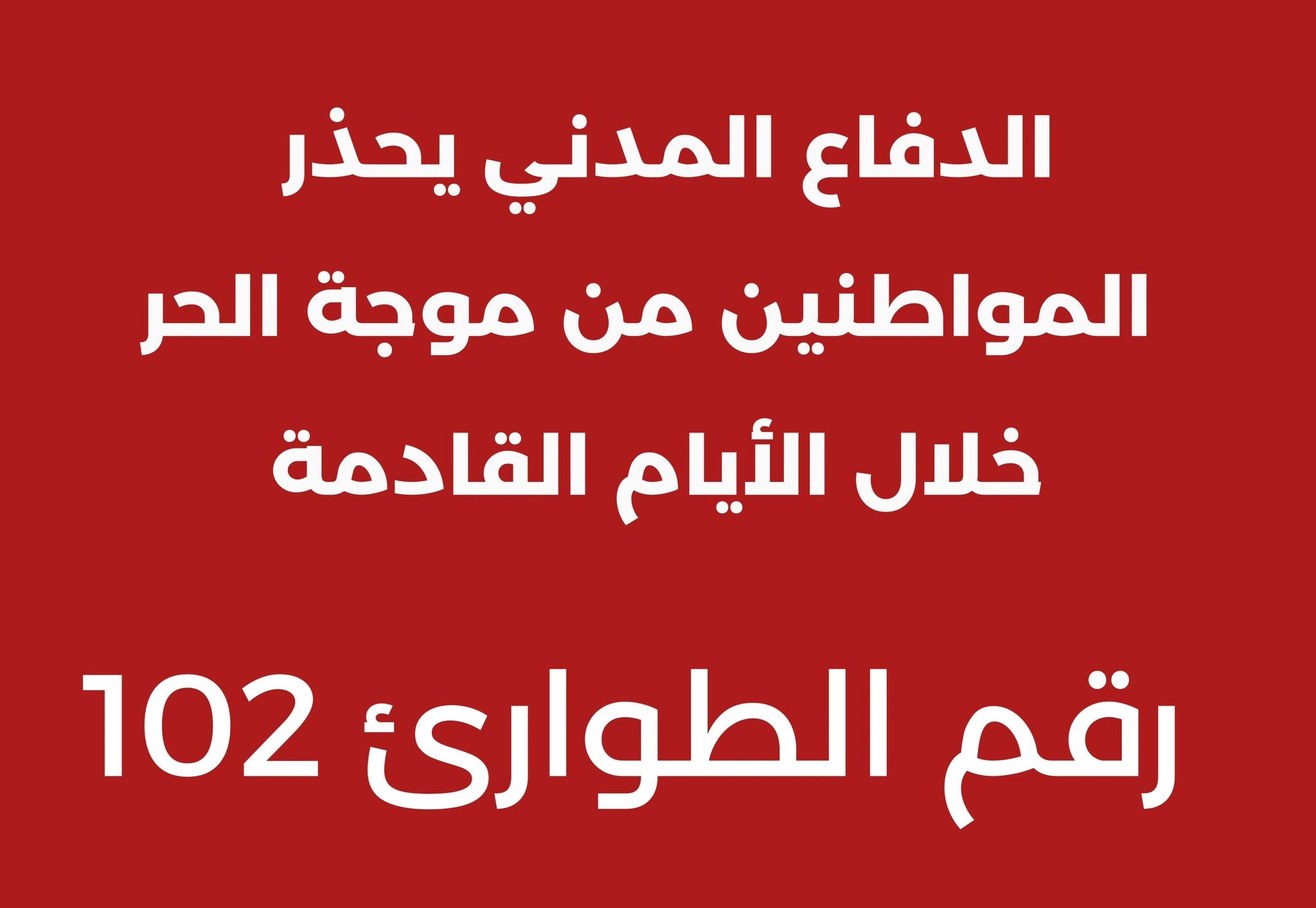 ويهيب الدفاع المدني بالأخوة المواطنين إتباع الاإرشادات لتفادي خطر موجة الحر :
