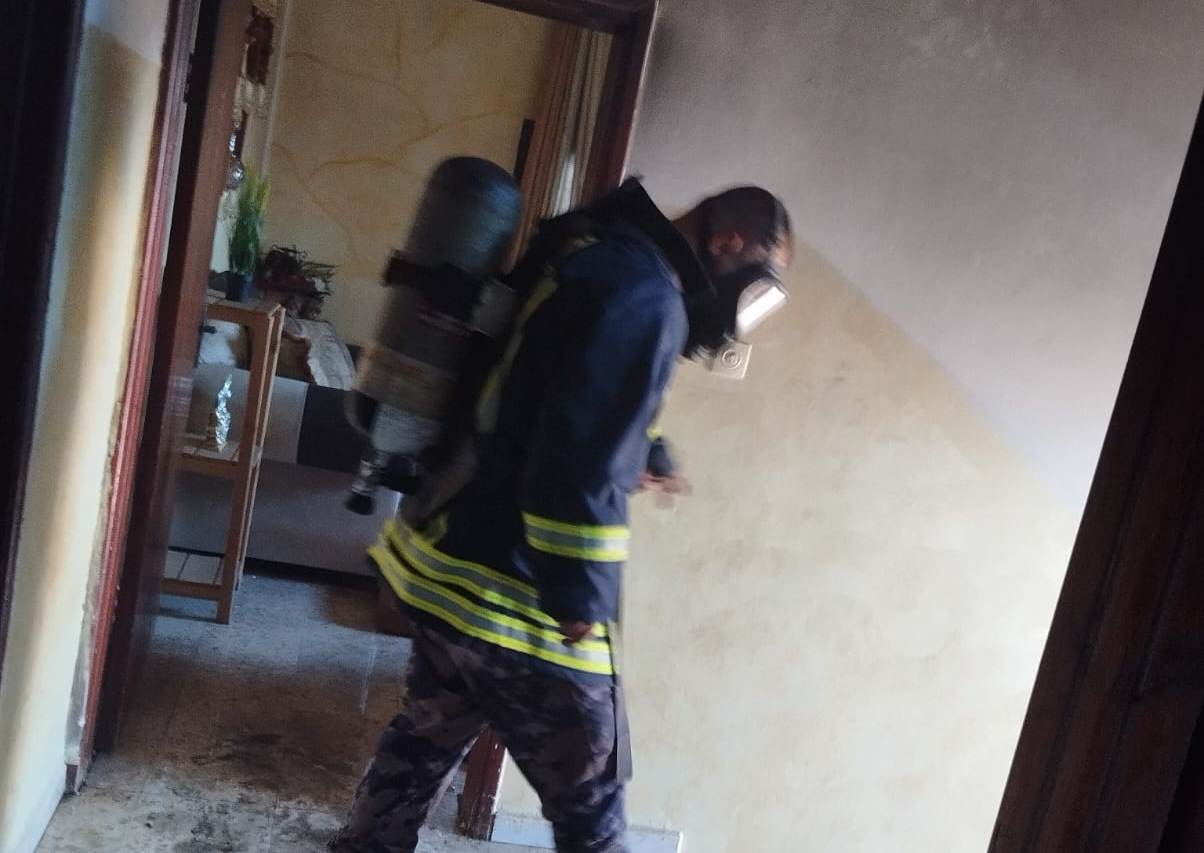 إخماد حريق إسطوانة غاز جانب منزل في بلدة مادما جنوب نابلس .