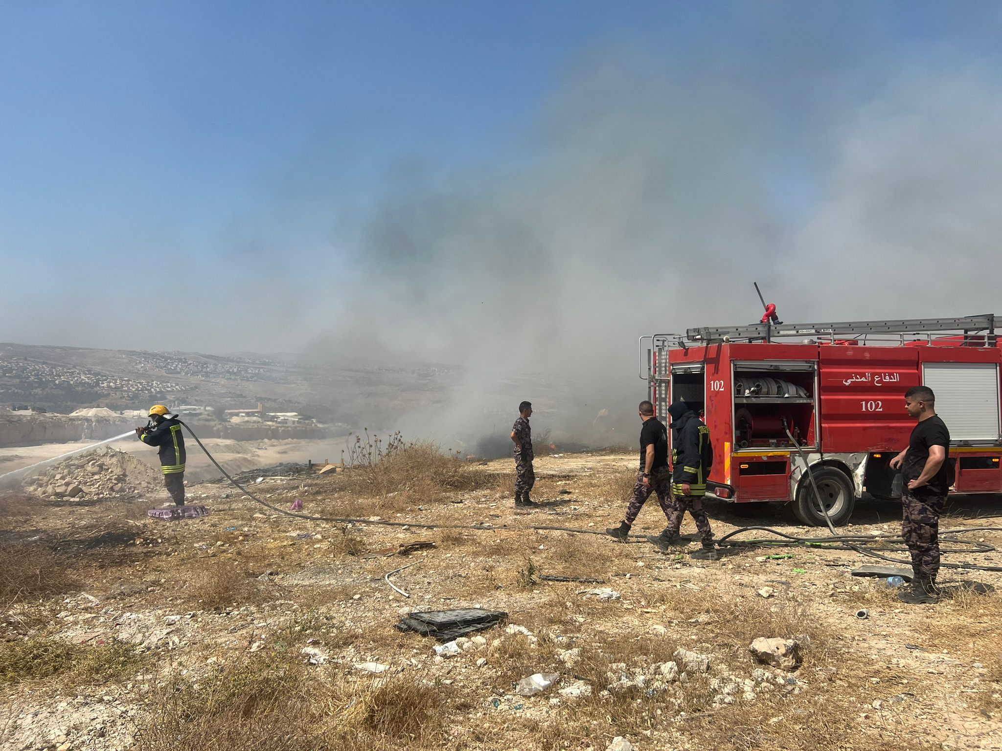 إخماد حريق أربعة مركبات كانت في محافظات القدس وبيت لحم ونابلس .