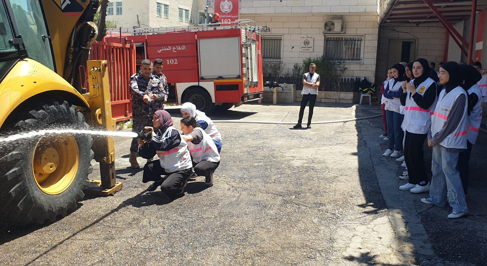 شمل التدريب طرق مواجهة الحرائق واستخدام وسائل السلامة العامة وتدريبهم وتعريفهم على اسطوانات الإطفاء اليدوية ومخاطر الغاز المنزلي والكهرباء وكيفية التعامل السليم معها ، إضافة لطبيعة عمل رجل الدفاع المدني ومهامه والحديث عن علوم الدفاع المدني بكافة جوانبه ، وإطلاعهم على مركبة الإطفاء ومحتواها والمعدات وآلية عملها والتعامل مع الإصابات وحوادث السير ، ولباس رجل الإطفاء .