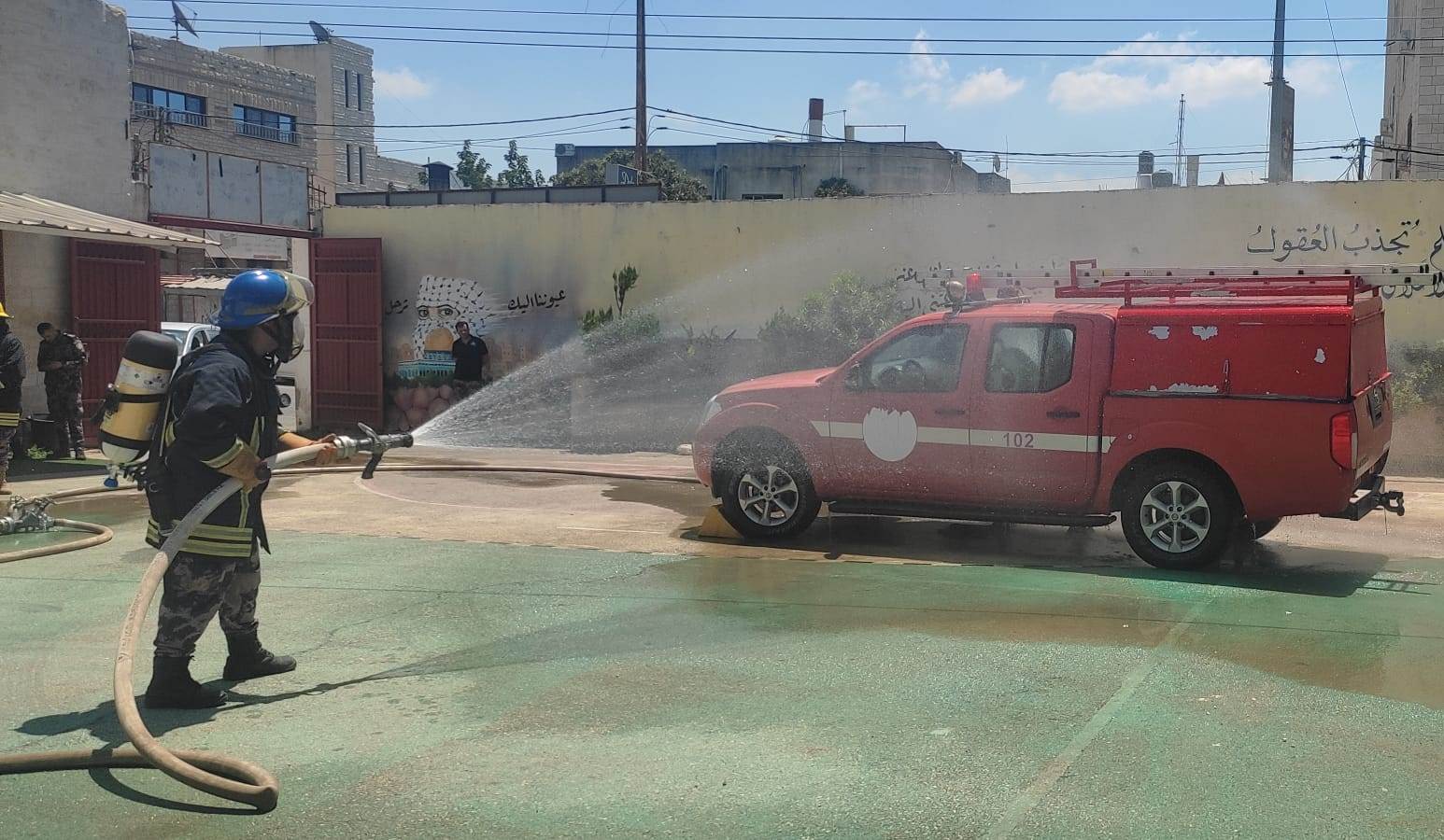 نظم وعقد طاقم التدريب في مديرية محافظة طولكرم اليوم الخميس 15/8/2024 ، دورة وتدريب لطواقم الإطفاء حول المركبات الكهربائية وبطاريات الليثيوم في مبنى مدرسة عمر بن عبد العزيز بمدينة طولكرم .