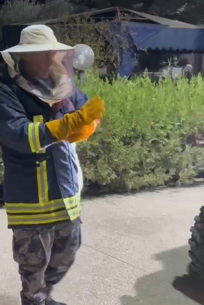 ازالة خطر عش للدبابير من داخل دير الروم الكاثوليك شرق بيت لحم