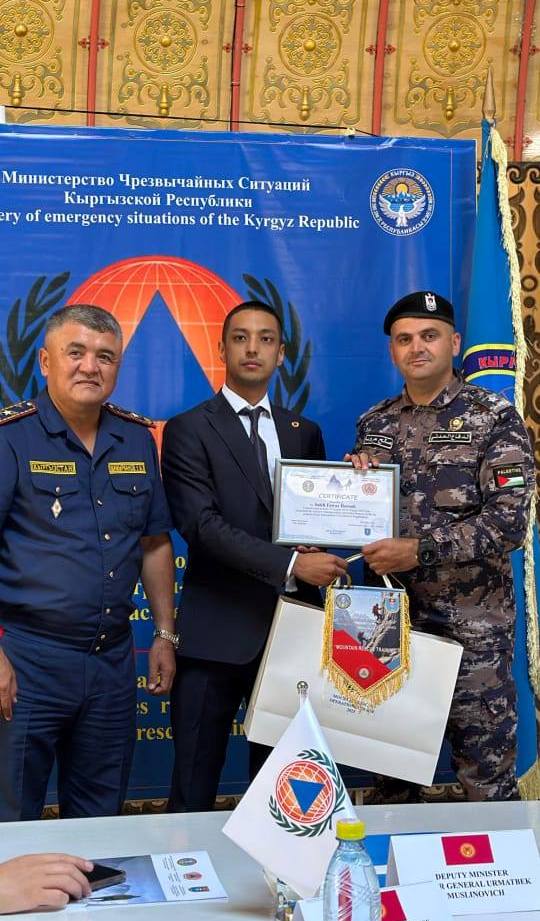 شارك الدفاع المدني الفلسطيني في فعاليات الدورة التدريبية الدولية الخاصة بمهارات الإنقاذ الجبلي ، ممثلا بملازم صالح فواز صالح حروب، والتي أقيمت في مدينة بيشكيك بجمهورية قيرغيزستان خلال الفترة من (14 _26 )/ 08/ 2025، بمشاركة فرق إنقاذ من 11 دولة .