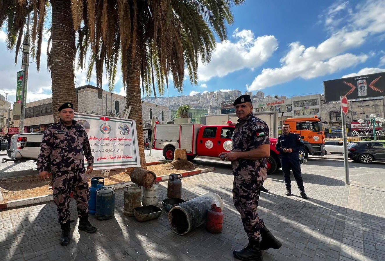 أحيت مديرية محافظة نابلس اليوم الاثنين 13/10/2025 ، اليوم العالمي للحد من مخاطر الكوارث، من خلال إقامة معرض توعوي في ميدان المدينة تضمن عرض عدد من أسطوانات الغاز التالفة بهدف توعية المواطنين بمخاطرها ومعايير السلامة الخاصة بها .