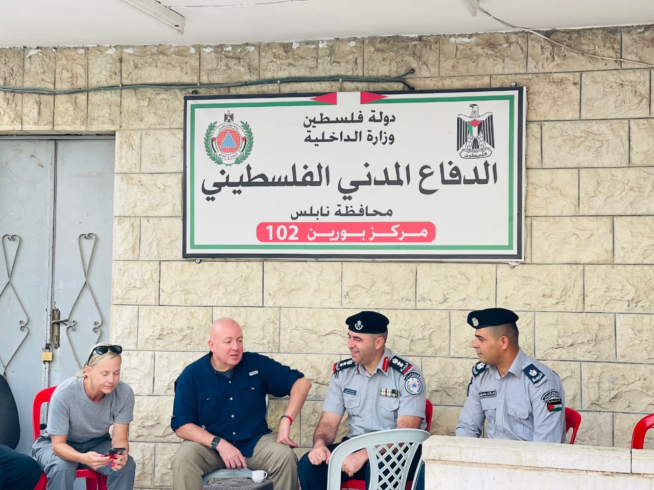ضم الوفد نائبة مدير إنفاذ القانون في البعثة روندا هيسلوب والخبير الكندي جون هيفرنان يرافقهما مدير التخطيط والتعاون الدولي عقيد محمود عاصي إستقبلهم مدير دفاع مدني المحافظة العقيد أبوب الطنبور وذلك لتعزيز التعاون الثنائي والإطلاع على خطط الاستجابة والاحتياجات وذلك ضمن زيارة يقوم بها الفريق بعد تقديم منحة مساعدات لمعدات انقاذ واطفاء لفرق المتطوعين في المحافظة .