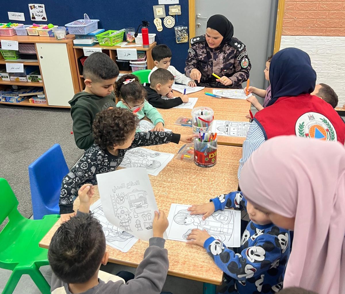 يهدف هذا النشاط إلى تسليط الضوء على إرشادات الوقاية والسلامة للأطفال وتدريب المعلمات فيها على مواجهة حالات الطوارئ ومنحهم تدريب حول الإخلاء في حالات الطوارئ ، والحديث عن اسطوانات الغاز ووسائل التدفئة والابتعاد عن اللعب بهما ، عدم إشعال الشمع والحركة بها ومخاطر العبث بالكهرباء .