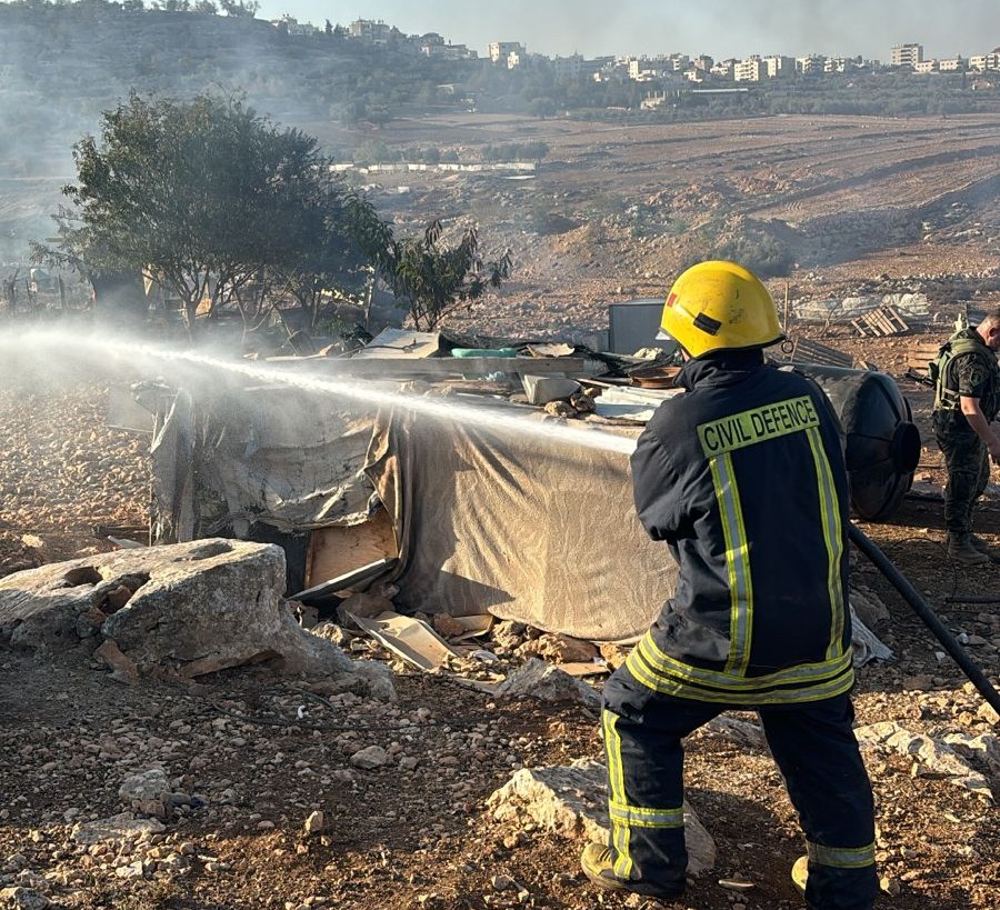 أخمدت طواقمنا في محافظة القدس اليوم الثلاثاء 21/10/2025 ، حريقا اندلع في عدد من المنازل وخيام ومضارب المواطنين ومركبات جراء اعتداء وشجار في مضارب البدو ببلدة الجيب شمال غرب المحافظة .