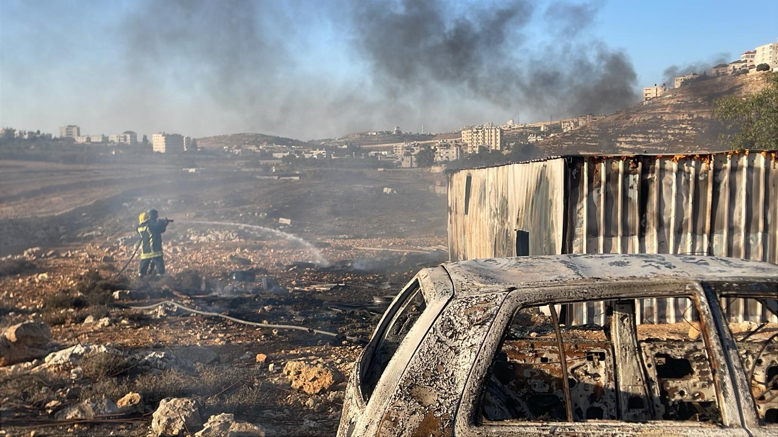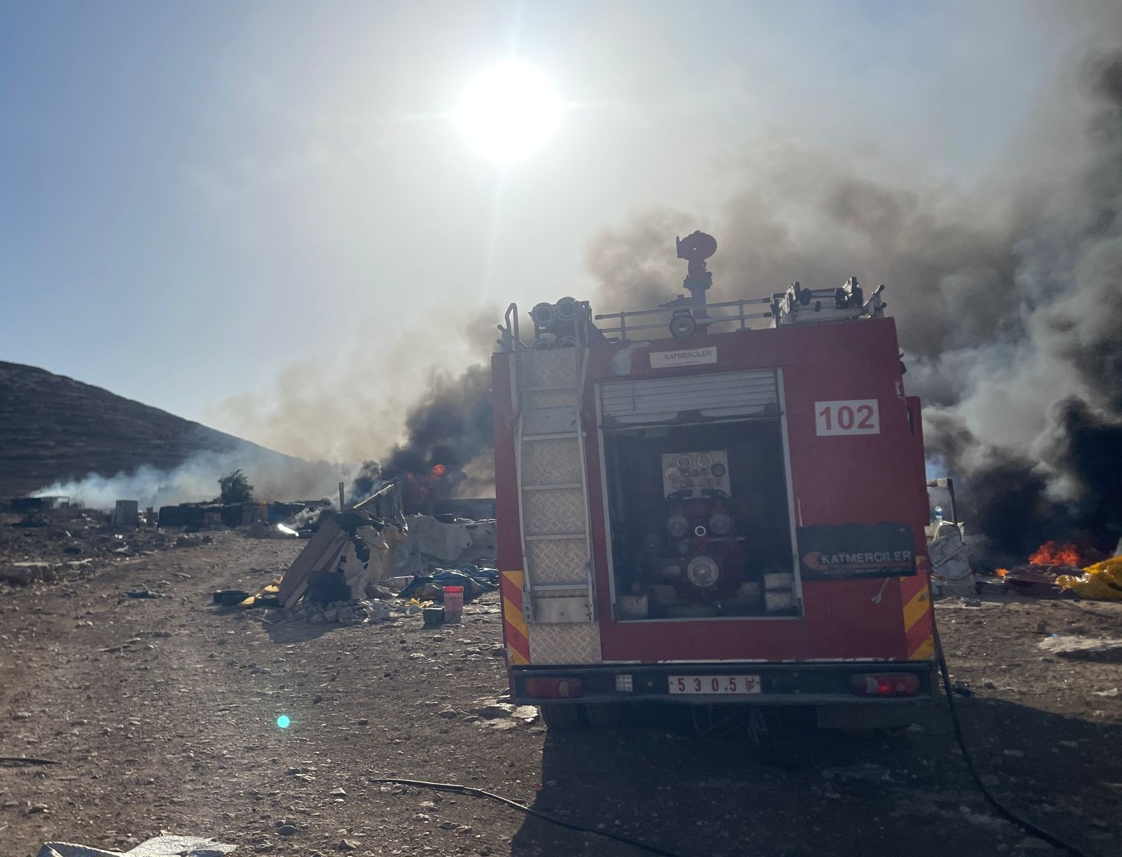 عملت طواقم مراكز بير نبالا وقطنة والرام في المحافظة وبإسناد من مديرية محافظة رام الله والبيرة والقوة المشتركة على إخماد النيران ومنع امتدادها إلى الخيام السكنية في المضارب وتأمين المكان حفاظًا على ممتلكات المواطنين وحرصاً على سلامتهم وحصر الأضرار في 12 منزل ومنزل مشيد بألواح معدنية بركس سكني ومركبتين وخيام سكنية .