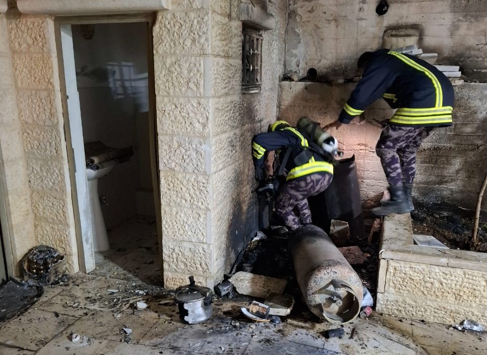 إخماد حريق نتج عن إنفجار إسطوانة غاز أمام منزل في مدينة دورا جنوب الخليل .