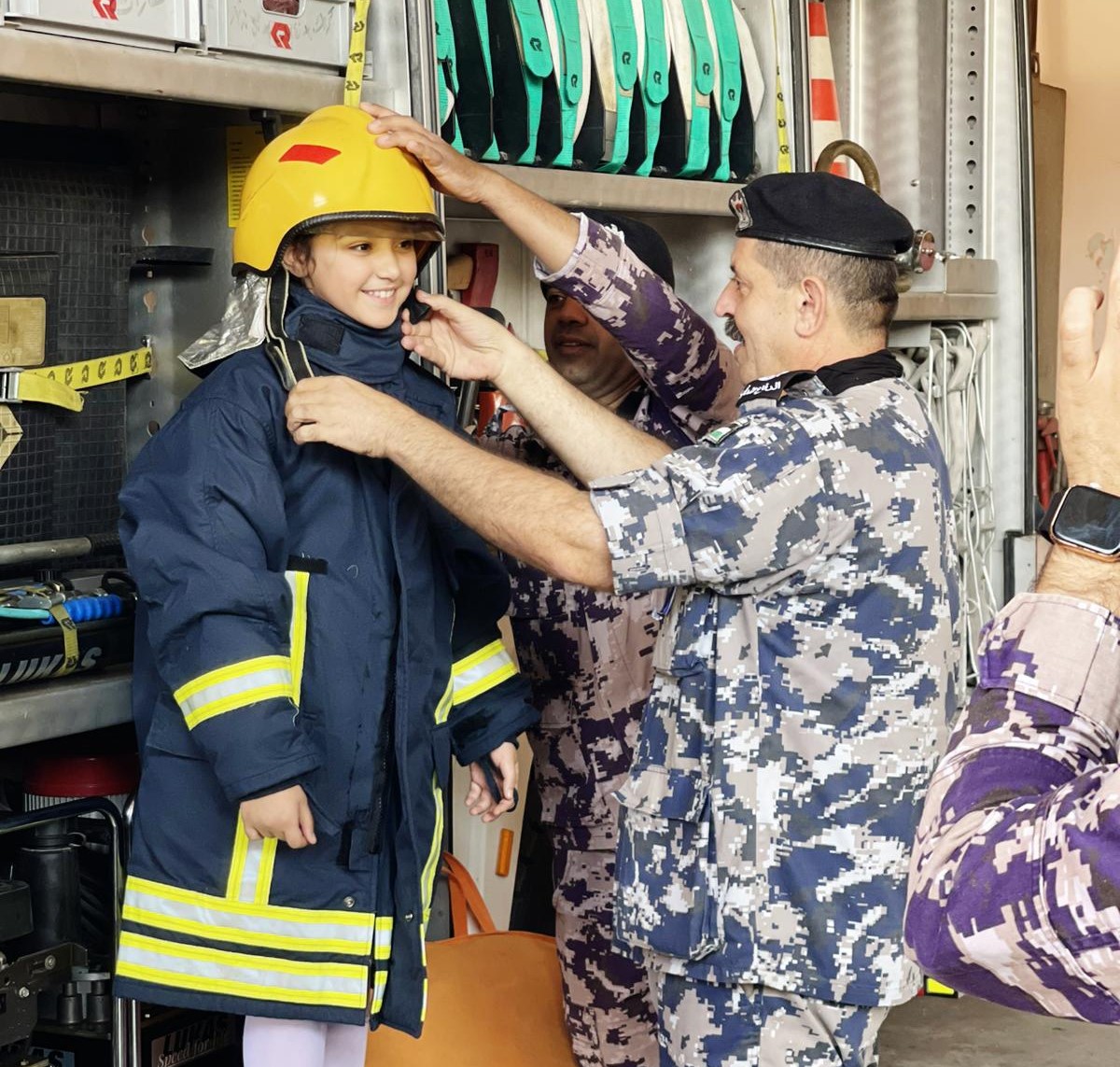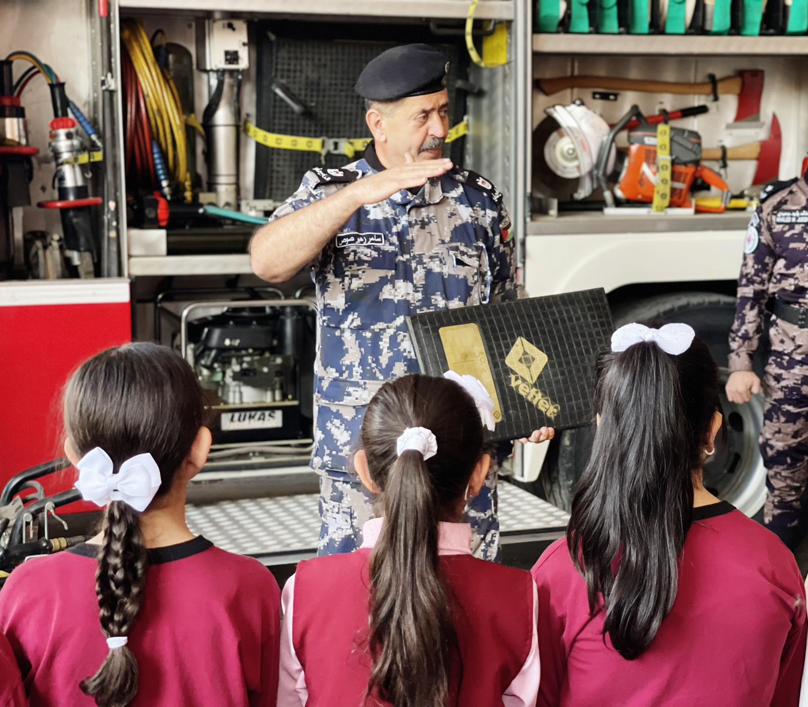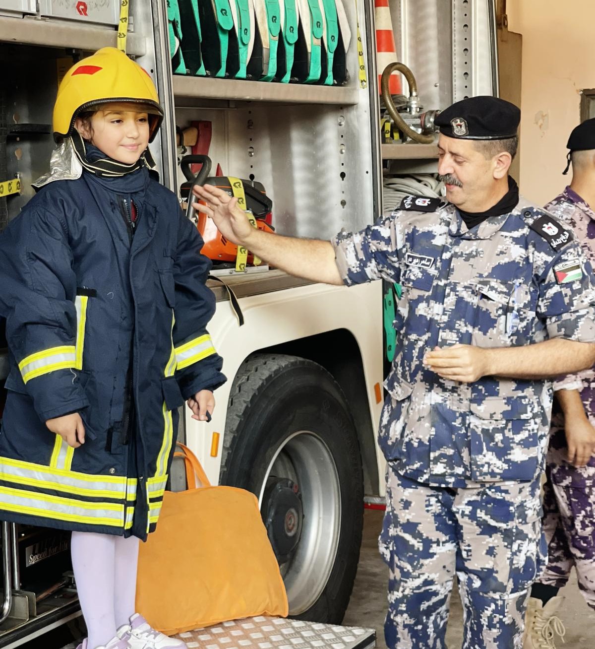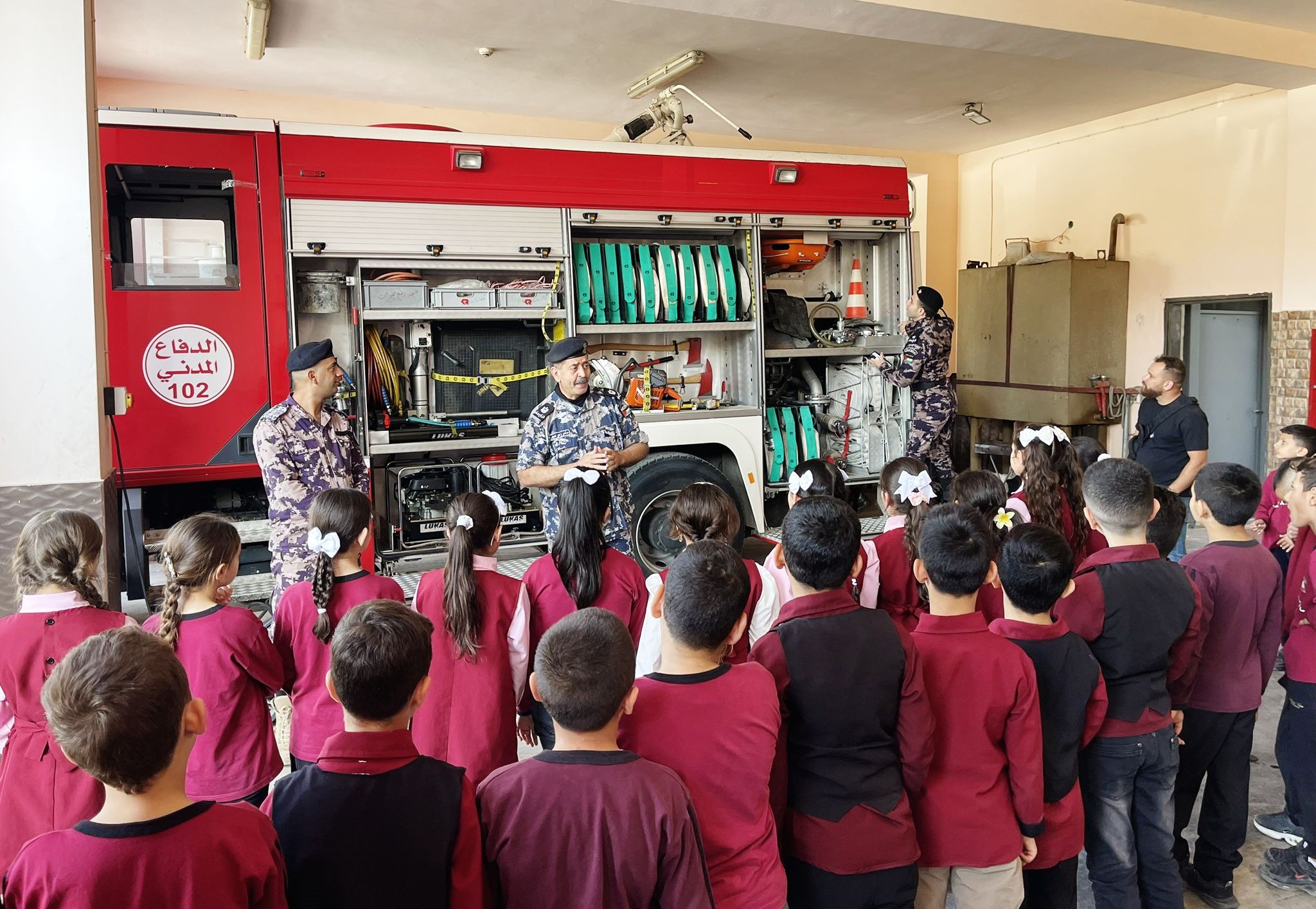 شمل تدريبهم التعريف برقم الطوارئ وآلية الإتصال السليم والتبليغ الصحيح عن الحوادث وحالات الطوارئ إضافة للحديث عن علوم الدفاع المدني بكافة جوانبه ، وتعريفهم على مركبة الإطفاء ومحتواها من معدات وأدوات ومعرفة طبيعة عمل كل معدة ، وتعريفهم بلباس رجل الإطفاء والإطلاع على اسطوانات الإطفاء اليدوية ومخاطر الغاز المنزلي والكهرباء ووسائل التدفئة المختلفة ومخاطر فصل الشتاء وكيفية التعامل السليم والصحيح معها ، إضافة لطبيعة عمل رجل الدفاع المدني ومهامه وإرشادهم لوقاية أنفسهم من مخاطر الحرائق والحوادث .