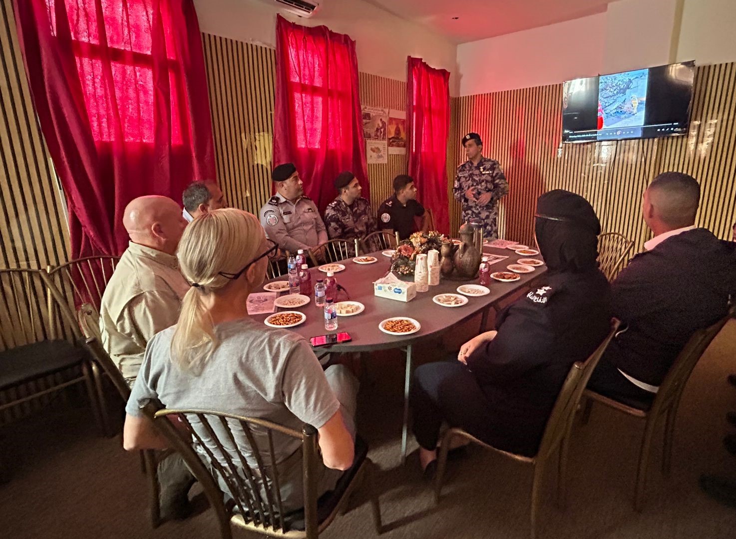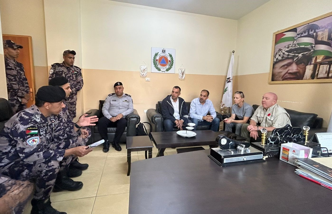 ضم الوفد نائبة مدير إنفاذ القانون في البعثة روندا هيسلوب والخبير الكندي جون هيفرنان يرافقهما مدير إدارة التخطيط المقدم يوسف عمارنة إستقبلهم طاقم المديرية والمراكز وذلك لتعزيز التعاون الثنائي والإطلاع على خطط الاستجابة والاحتياجات وذلك ضمن زيارة يقوم بها الفريق بعد تقديم منحة مساعدات لمعدات انقاذ واطفاء لفرق المتطوعين في المحافظة .