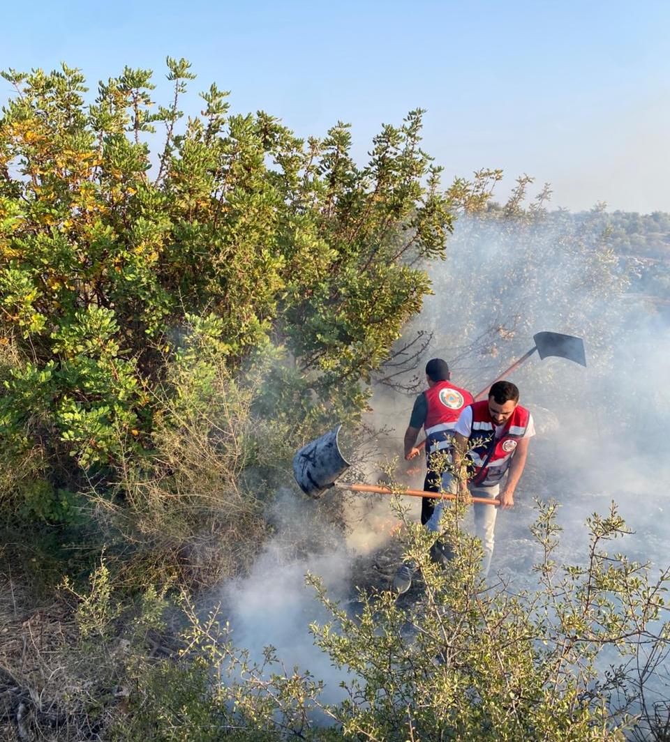 عملت مجموعة المتطوعين والطواقم بجهد متواصل حتى تمكنوا من السيطرة على الحريق وإخماد النيران وحصرها والحد من إتساع مساحتها ، فتمت حماية الأراضي الزراعية وأشجار زيتون محيطة بالحريق والنيران التي نتجت عن إعتداء جيش الإحتلال على أراض البلدة بعد أن أطلقت عدد من قنابل الإضاءة والحرارية ما تسببت في إندلاع النيران .