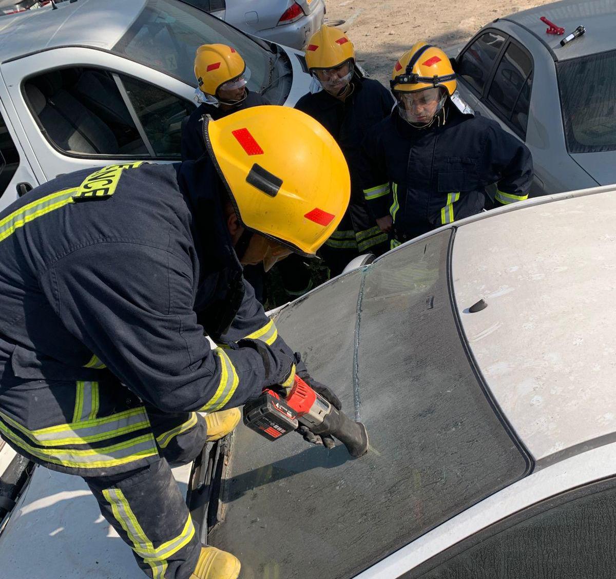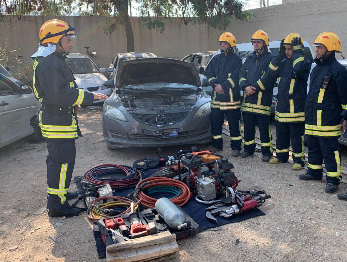 تخلل التدريب محاكاة إستخدام أجهزة الفتح والقص الهيدروليكية للتعامل مع حوادث السير وتصادم المركبات وإخلاء وتأمين الإصابات وإستخدام معدات وأدوات الإنقاذ المختلفة للتعامل مع العوائق الناتجة عن سقوط الأشجار والأجسام أو الحوادث التي تتطلب فتح طرق مغلقة وتأمين ممتلكات .