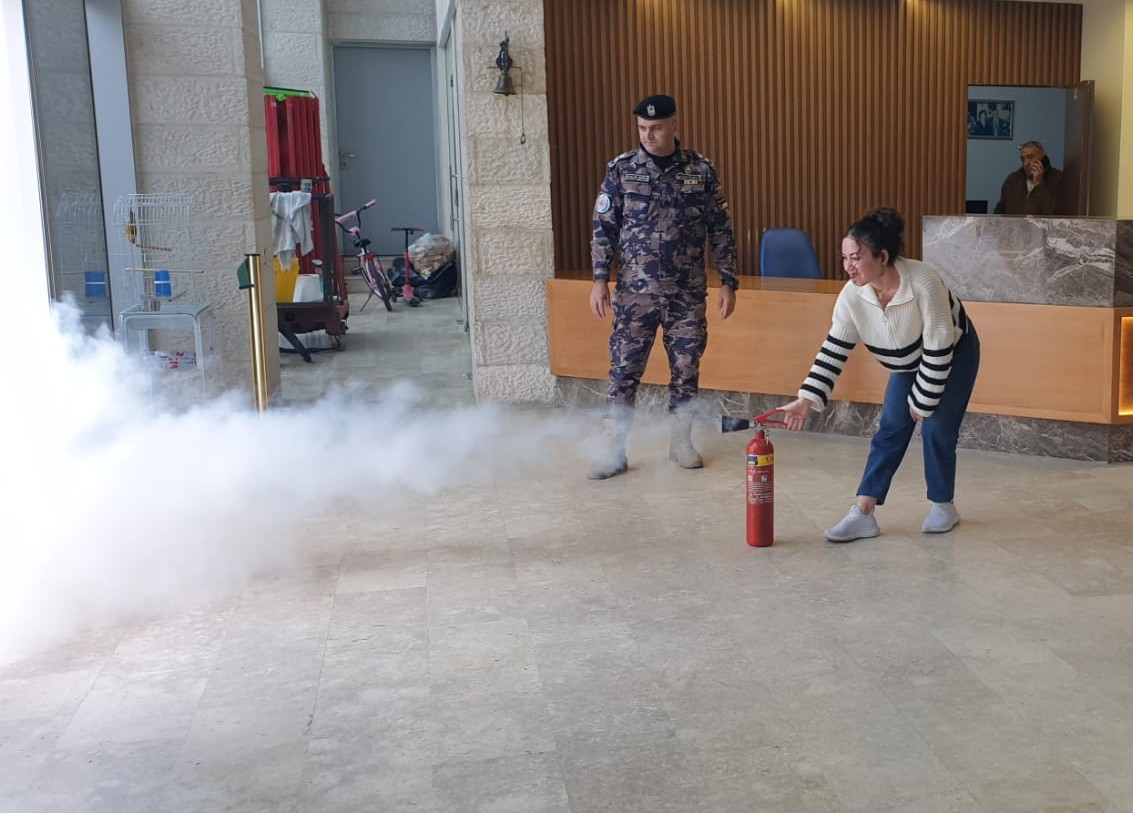 تضمنت الجولة تقديم إرشادات حول أساليب التعامل مع مصادر الخطر داخل هذه المنشئات والتعامل الصحيح مع تسرب الغاز وإحتوائه ، وآلية وطرق استخدام اسطوانات الإطفاء اليدوية والتدريب عليها ، كما تم التأكيد على ضرورة الالتزام بمعايير وإجراءات الوقاية والسلامة العامة والمهنية ورفع كفاءة العاملين بالتجارب والخبرات العملية بمهنية وفعالية عالية لمكافحة الحرائق وتجنب الحوادث وتعزيز القدرة على الاستجابة الفورية والفعّالة ، بما يضمن سلامة المواطنين والنزلاء السياح وحماية ممتلكاتهم في مختلف الظروف للوصول بمجتمع مدرب قادر على حماية نفسه .