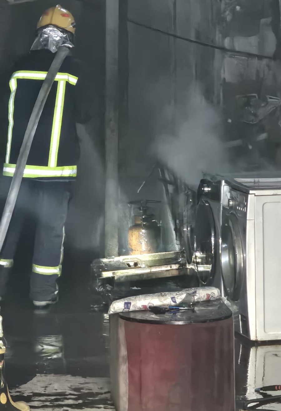 أخمدت طواقمنا في محافظة القدس اليوم السبت 22/11/2025 ، حريق اندلع داخل مخزن مشيد من الألواح معدنية “بركس” يستخدم لجمع وبيع الاجهزة الكهربائية والبضائع المستعملة في بلدة الرام شمال المحافظة .
