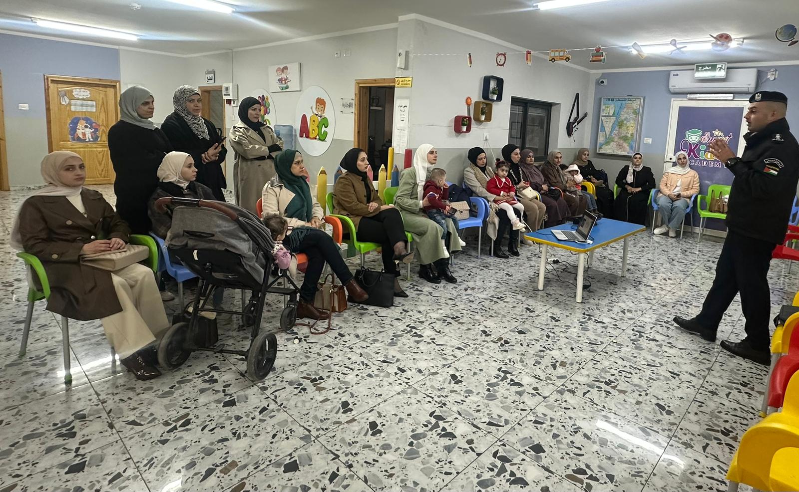 عقدت طواقم التدريب في مديرية محافظة طولكرم اليوم الأحد 21/12/2021 ، محاضرة توعية في علوم الوقاية والسلامة العامة لأمهات طلاب روضة “سمارت كيدز” في مدينة طولكرم .