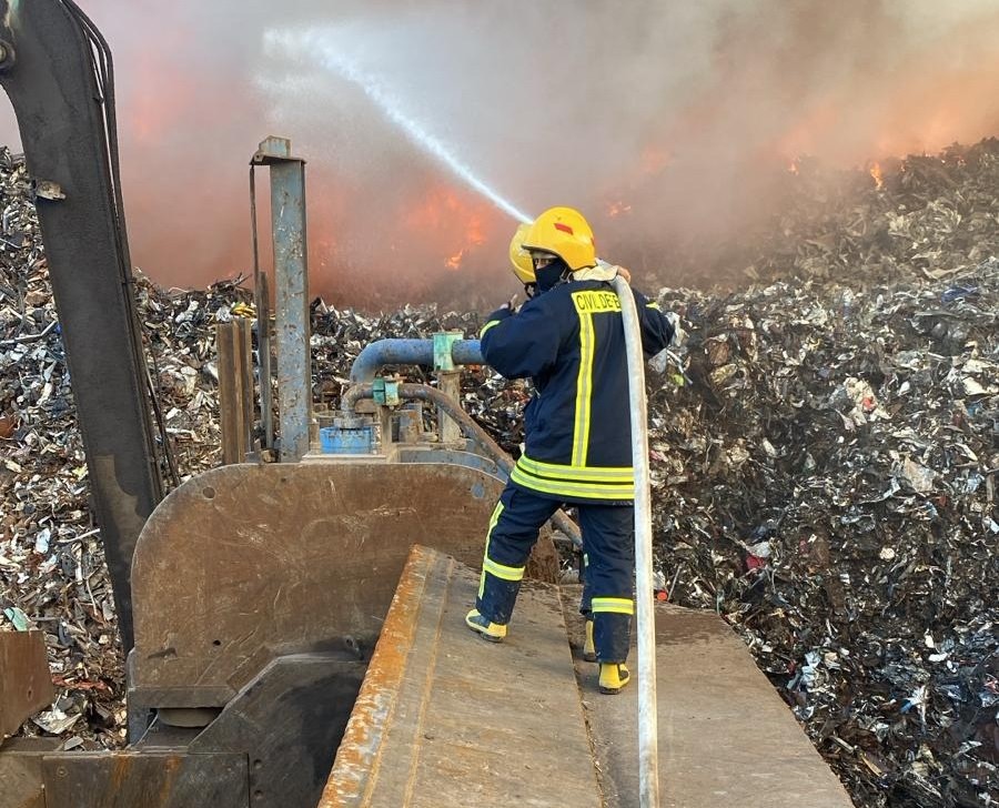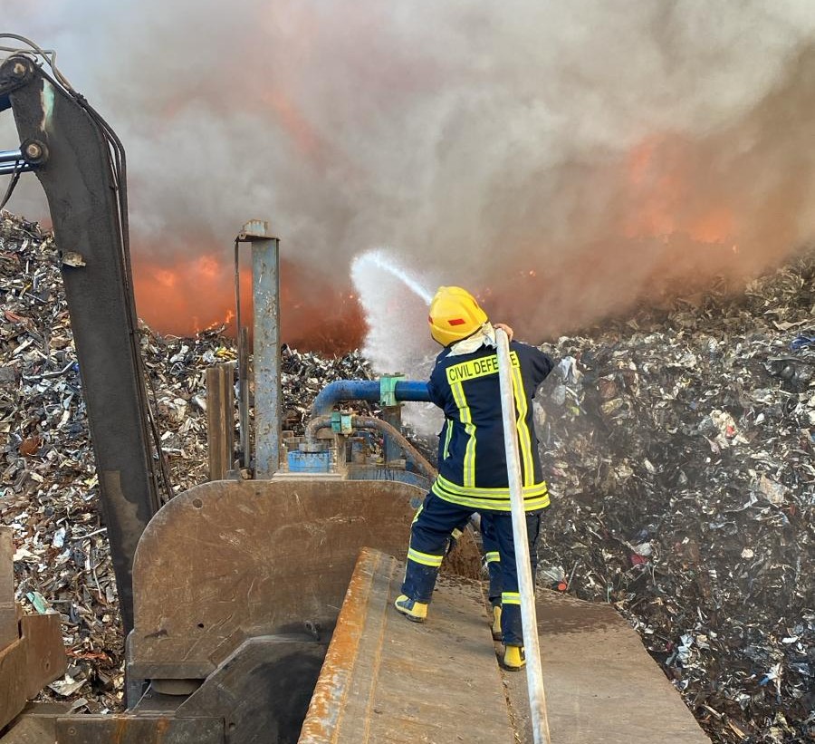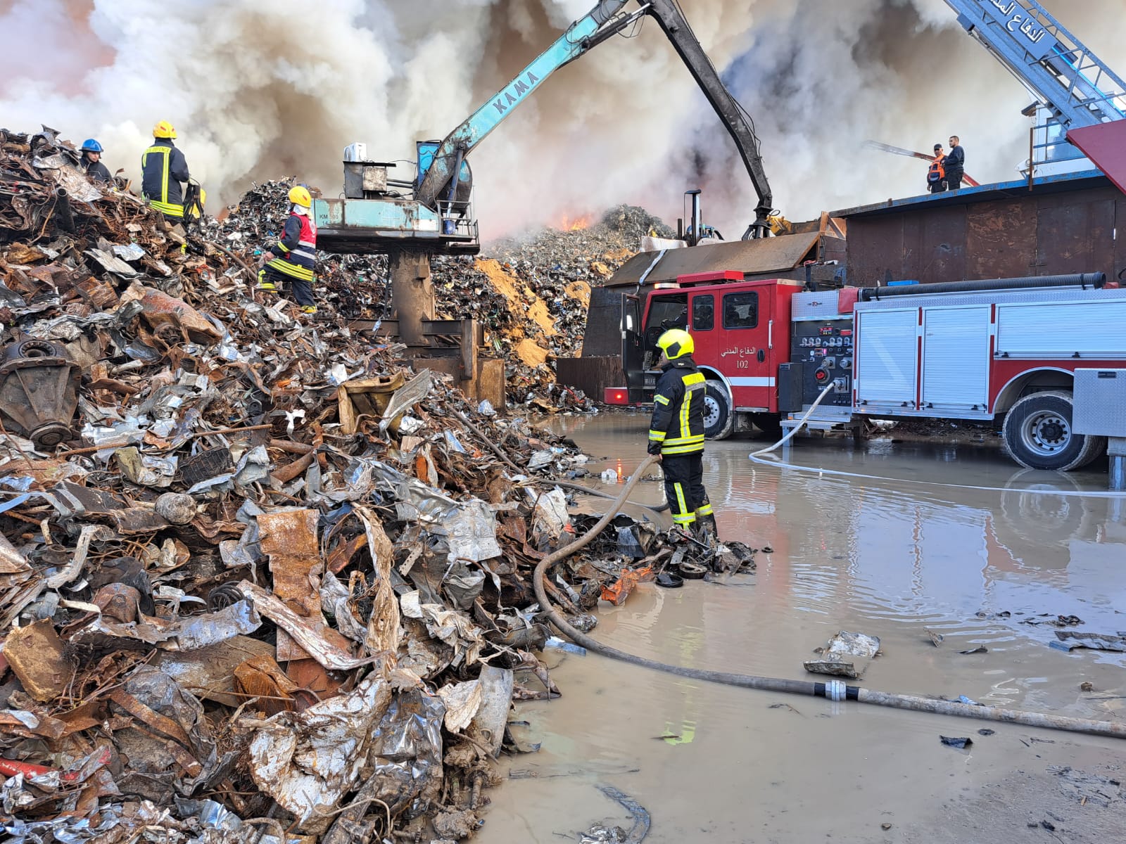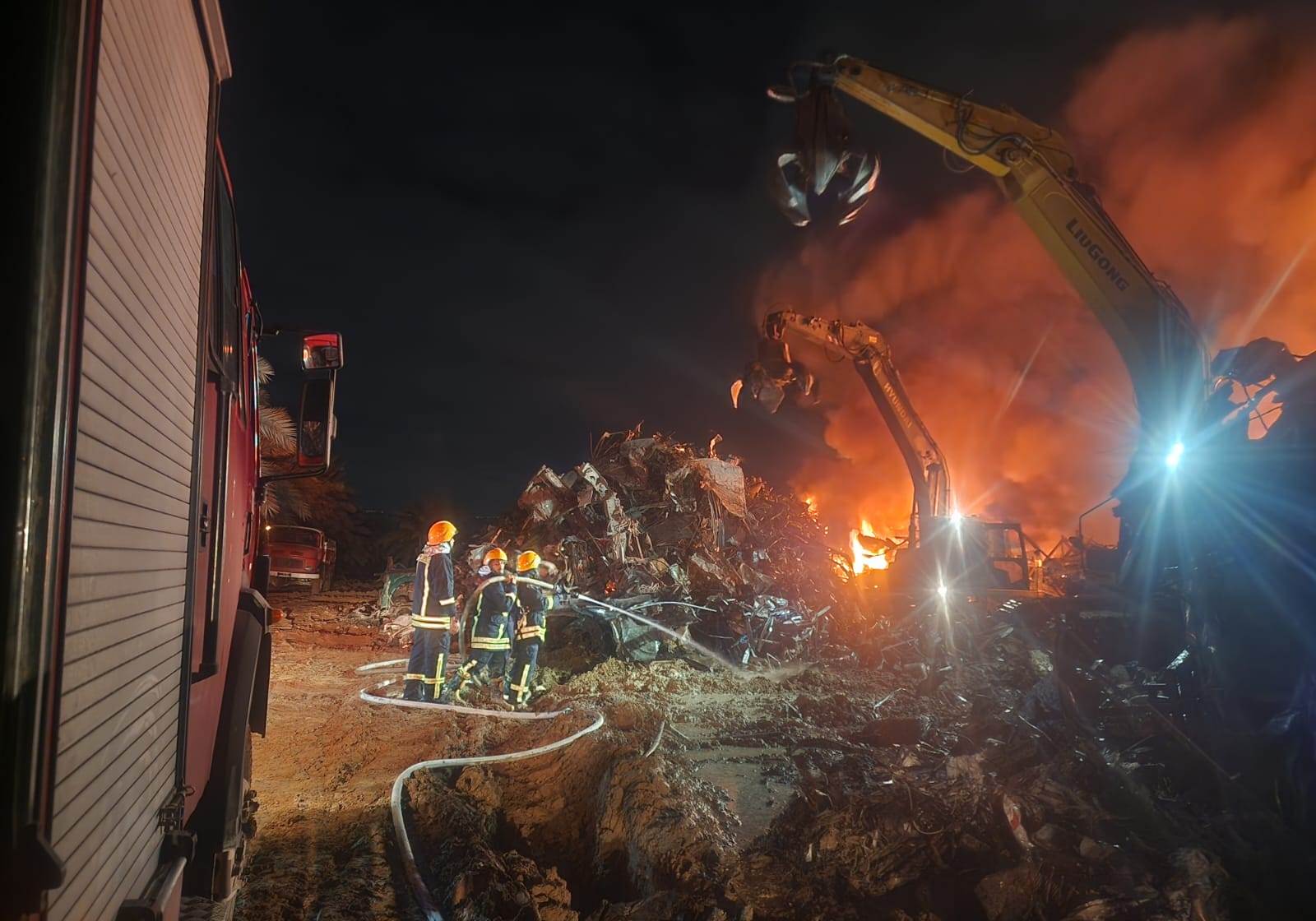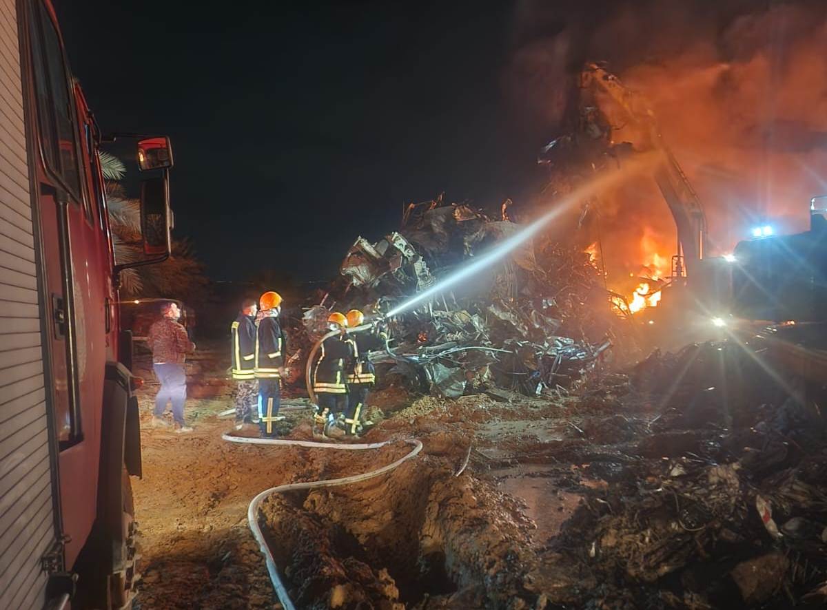 طواقمنا تتعامل مع حريق بساحة مصنع حديد في مدينة أريحا