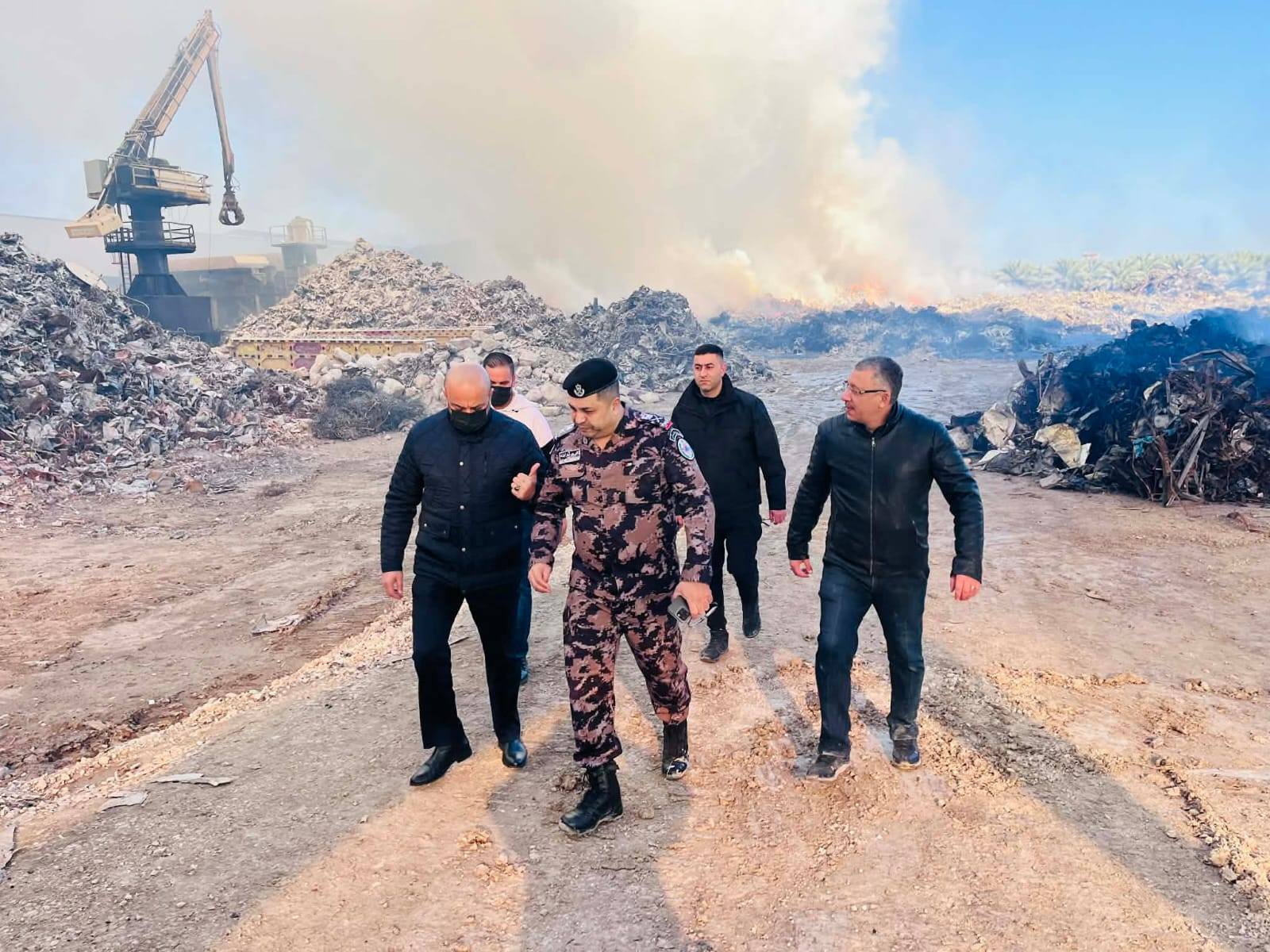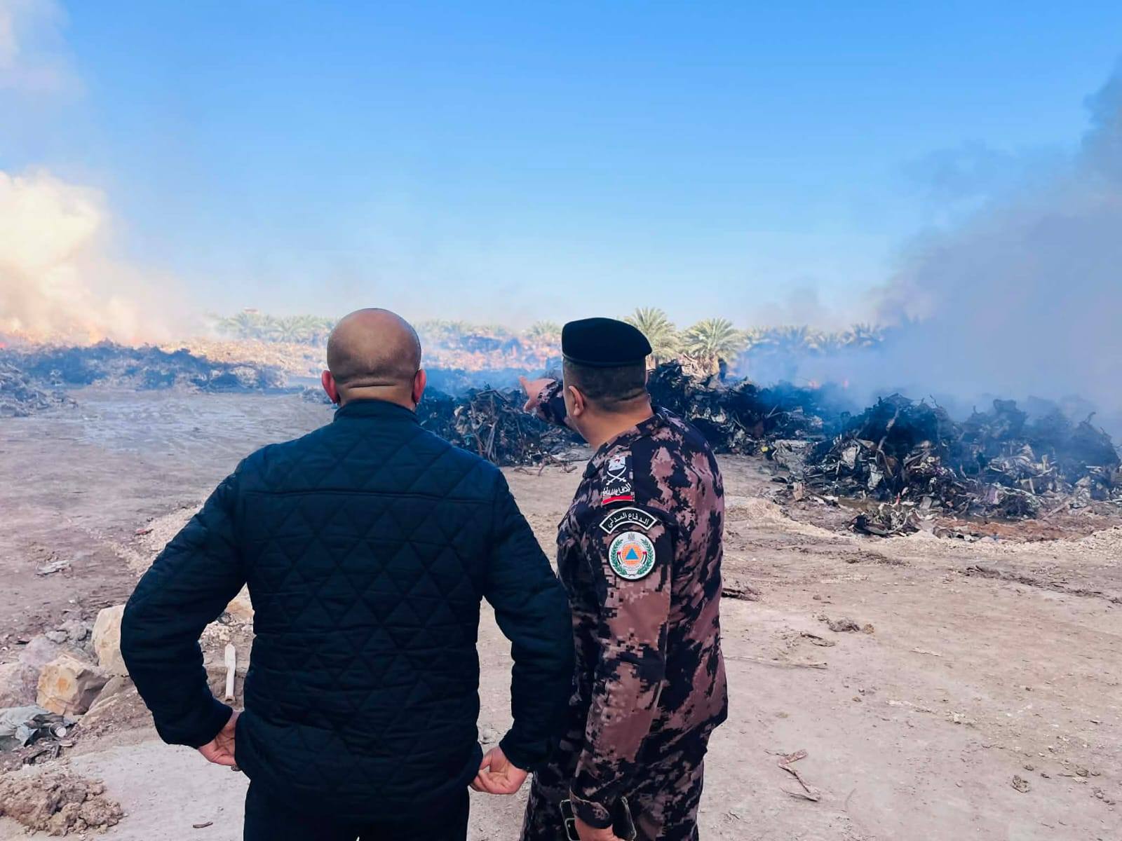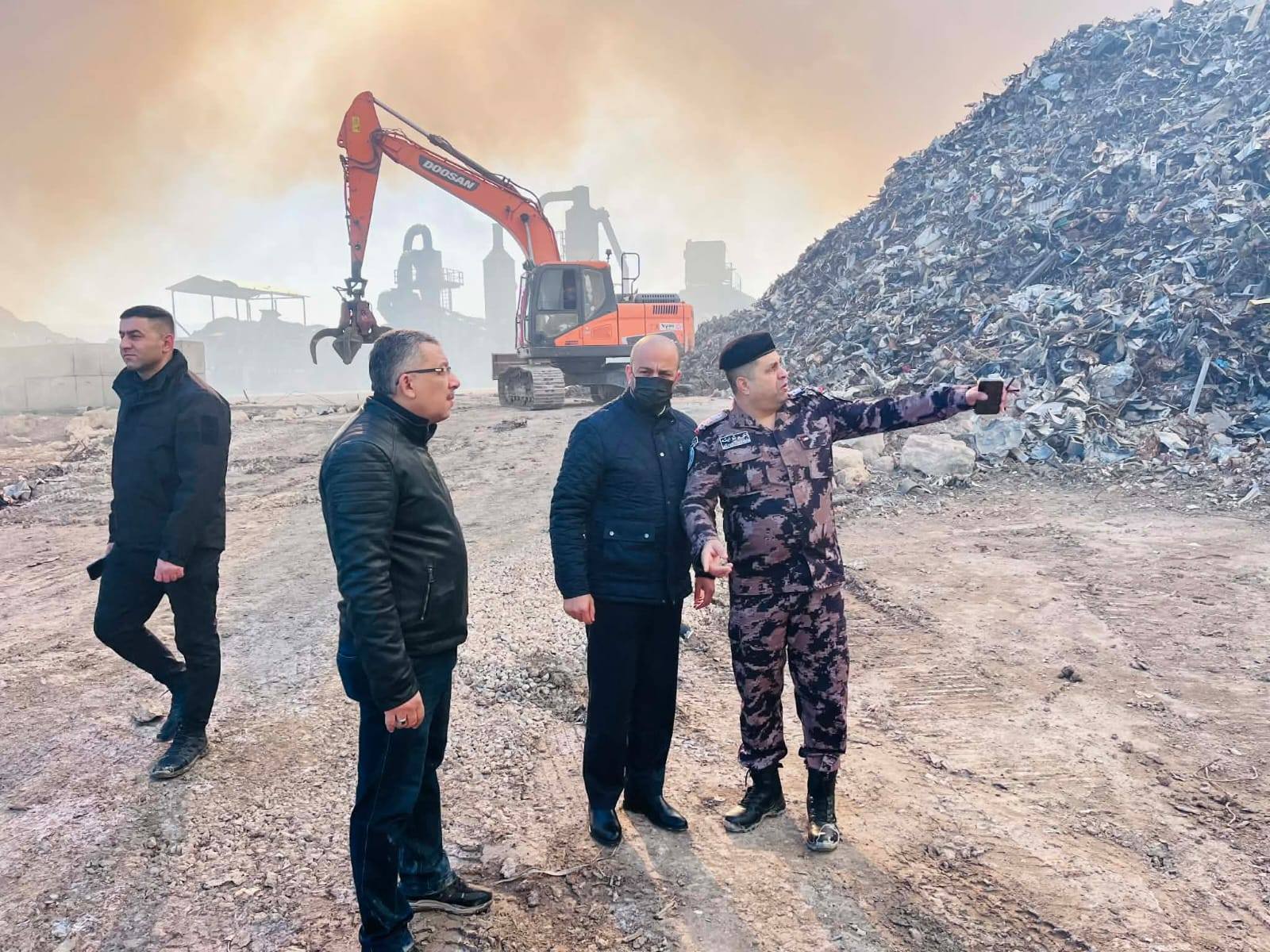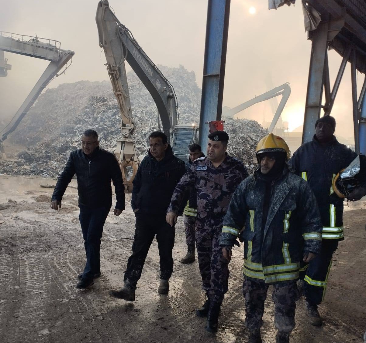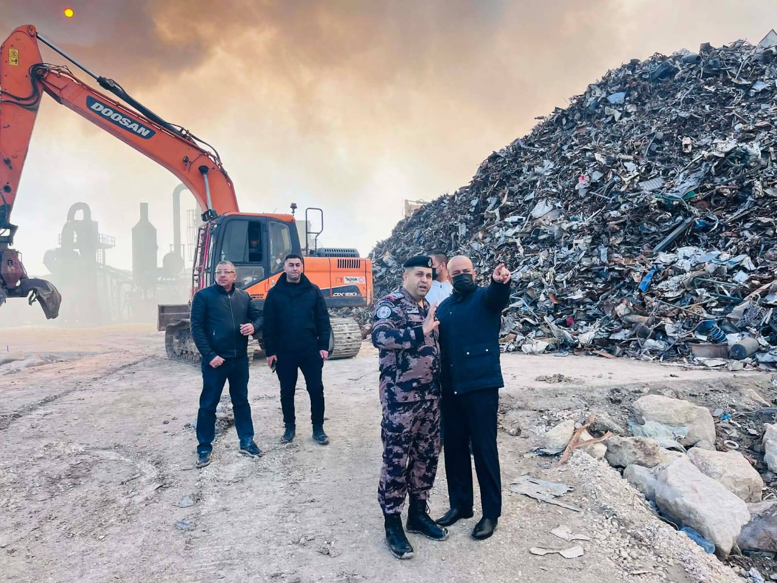 تفقد مدير عام الدفاع المدني الفلسطيني اللواء الركن أكرم ثوابتة يرافقه محافظ محافظة أريحا والأغوار د. حسين حمايل صباح اليوم الأحد 04/01/2026 ، موقع الحريق المندلع في ساحة مصنع حديد بمدينة أريحا .
