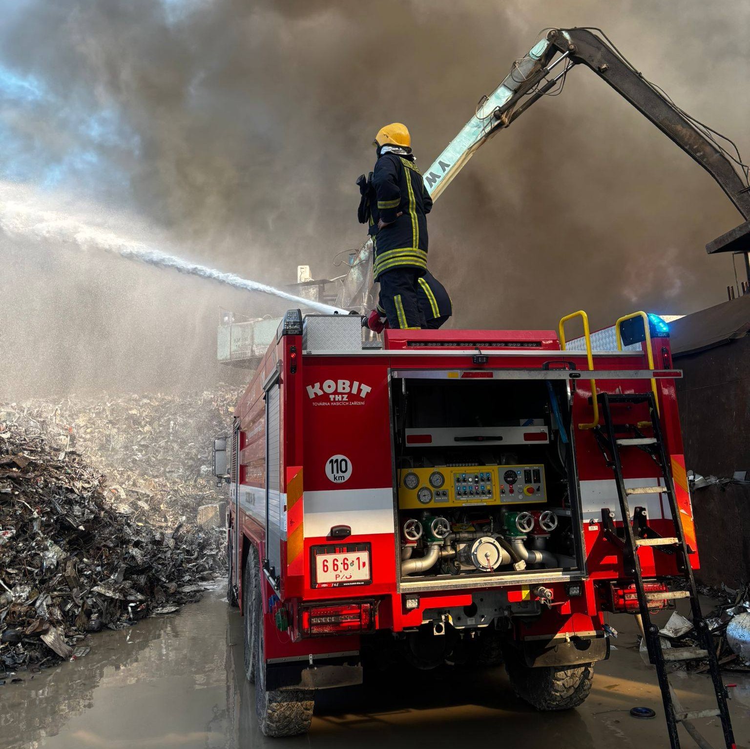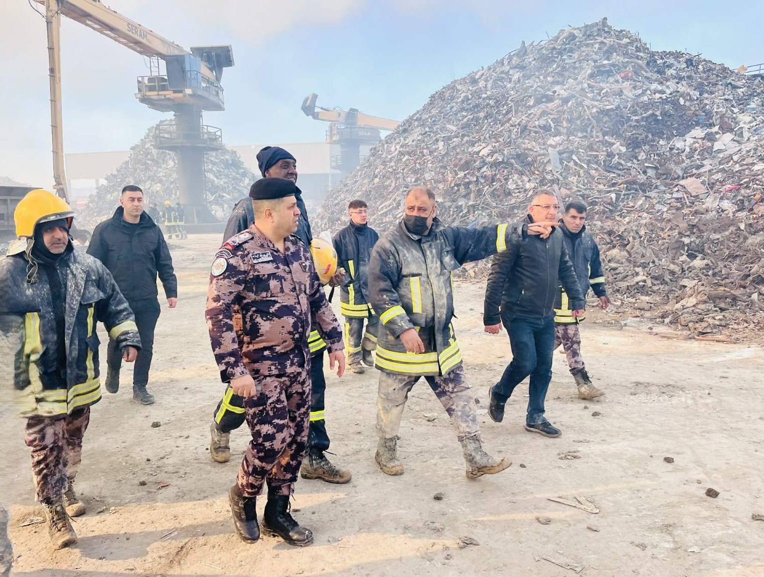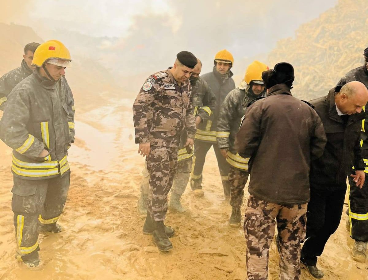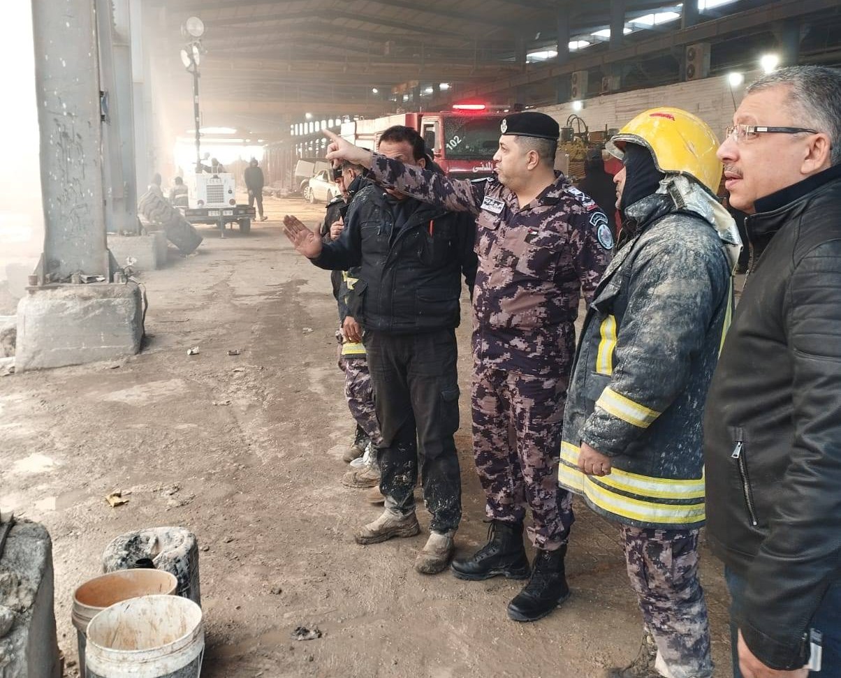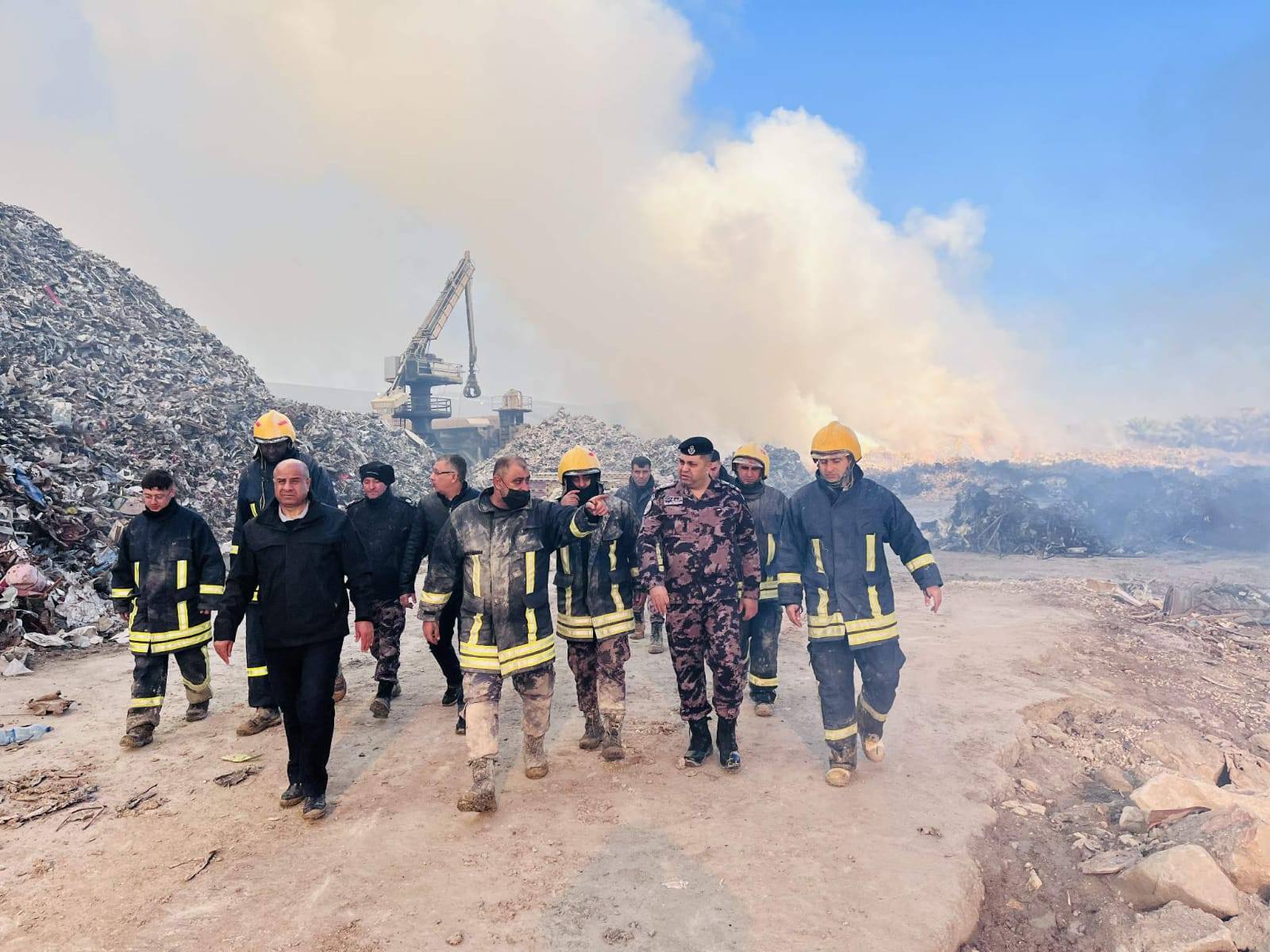 تفقد مدير عام الدفاع المدني الفلسطيني اللواء الركن أكرم ثوابتة يرافقه محافظ محافظة أريحا والأغوار د. حسين حمايل صباح اليوم الأحد 04/01/2026 ، موقع الحريق المندلع في ساحة مصنع حديد بمدينة أريحا .