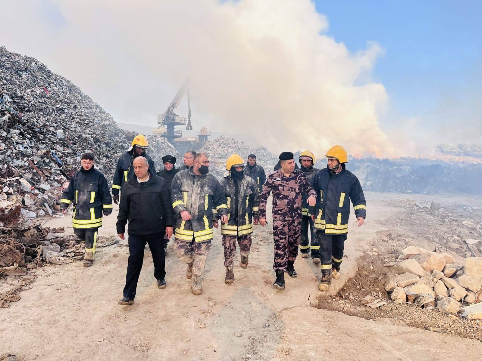 وأشرف اللواء الركن ثوابتة ميدانيًا على عمل الطواقم ، موجّهًا إياهم إلى الاستمرار في تنفيذ الإجراءات اللازمة لحصر الحريق ومنع امتداده .