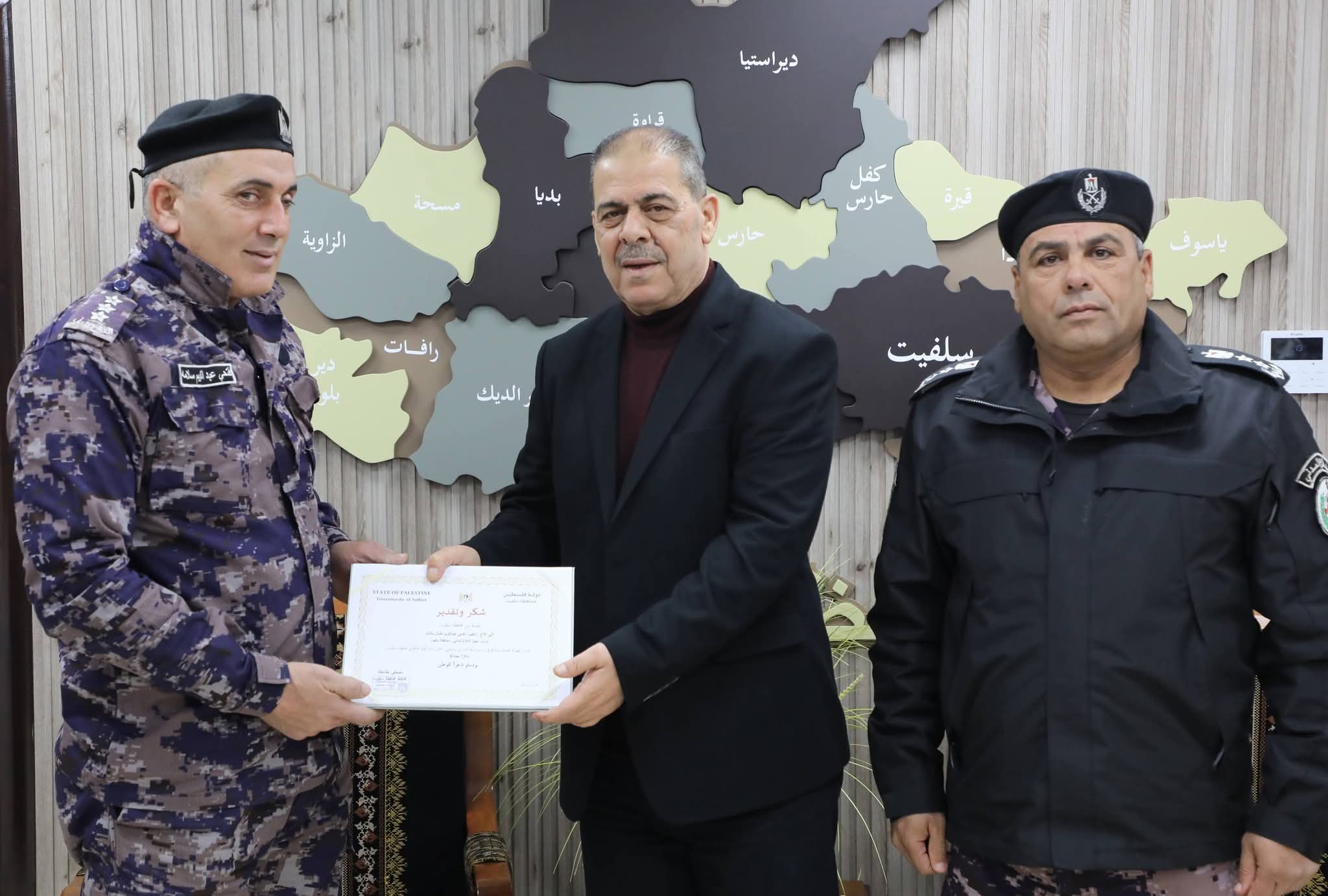محافظ سلفيت مصطفى طقاطقة يكرّم ضباطًا تقديرًا لتفانيهم في أداء واجبهم