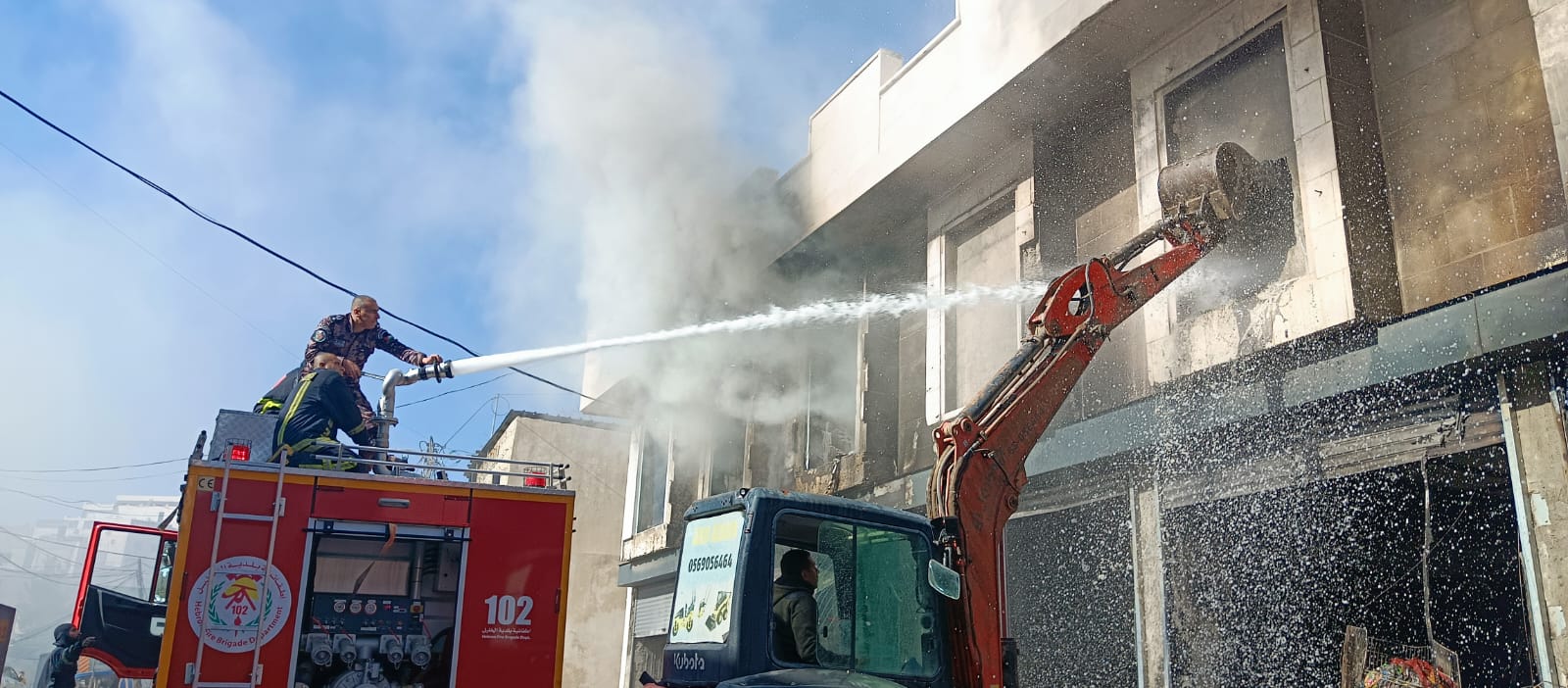 ساندت طواقمنا في مديرية محافظة الخليل طواقم إطفاء بلدية الخليل اليوم الإثنين 05/01/2026 ، للسيطرة على حريق مستودعات العاب بشارع المدارس في مدينة الخليل .