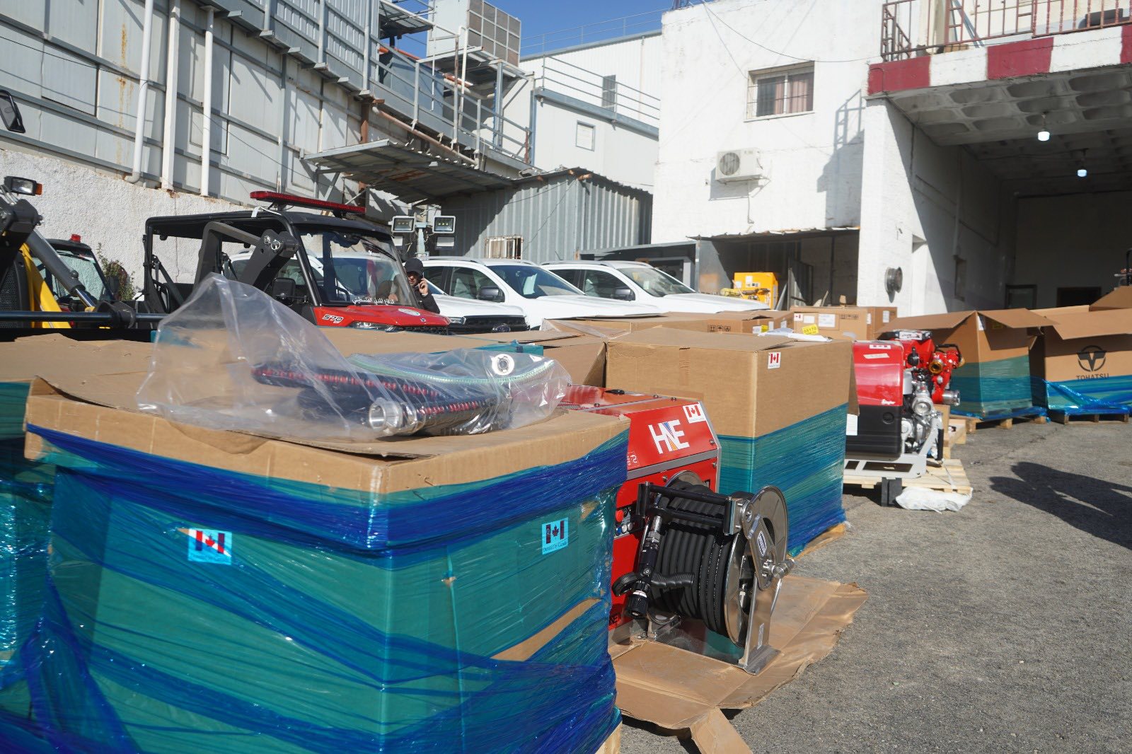 شملت المنحة 17 مضخة مخصصة للتعامل مع الحرائق الكبرى ومتعددة الاستخدامات إلى جانب 8 مركبات (UTV) تدخل عاجل متخصصة للإخلاء الطبي لإصابات الحوادث ومخصصة للعمل في المناطق الضيقة والوعرة كالمخيمات والقرى حيث تشكل هذه المعدات إضافة نوعية تسهم في تعزيز قدرات الدفاع المدني التشغيلية وتقليل زمن الاستجابة وتسريع الوصول إلى مواقع الحوادث خاصة في الظروف الصعبة .