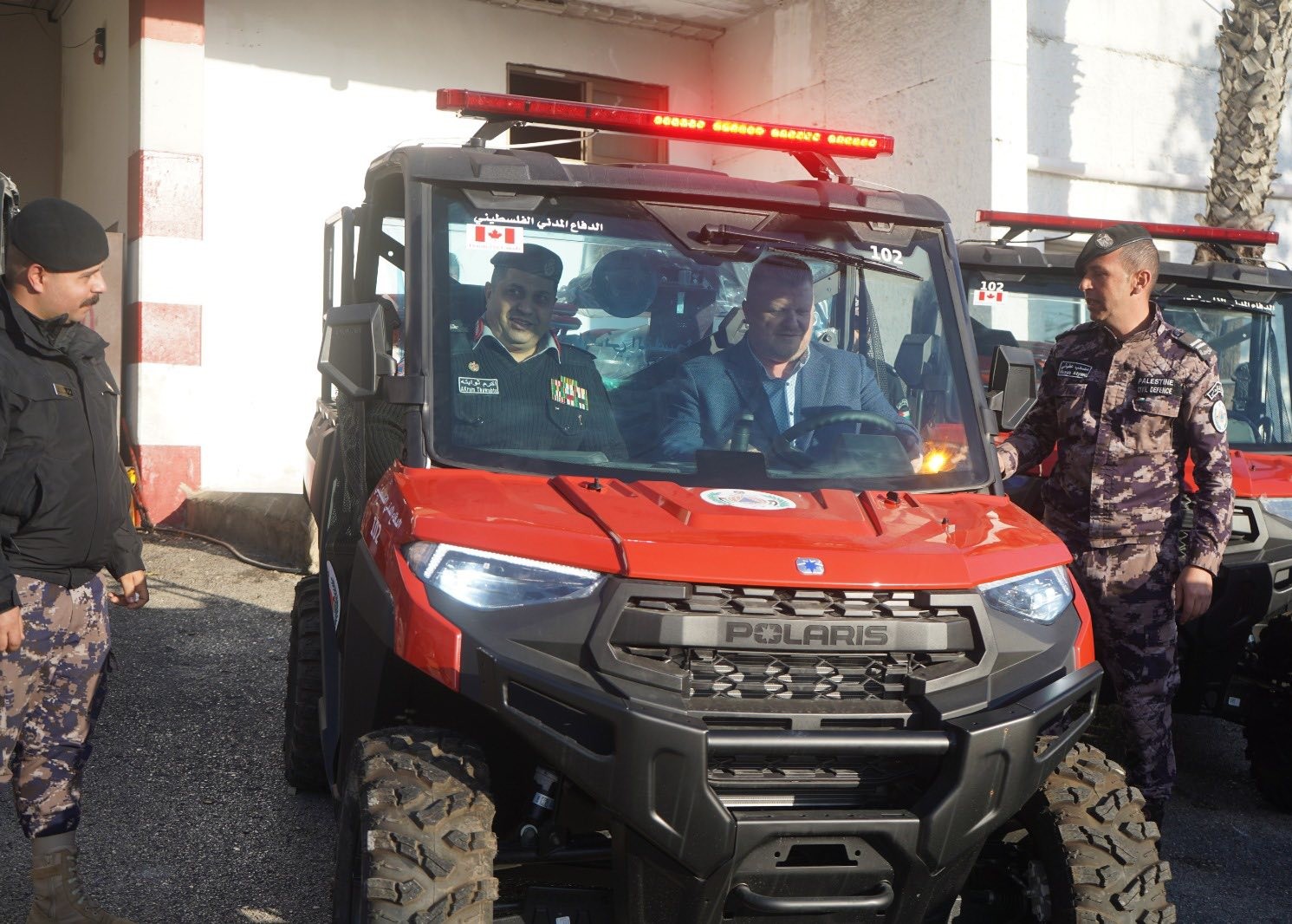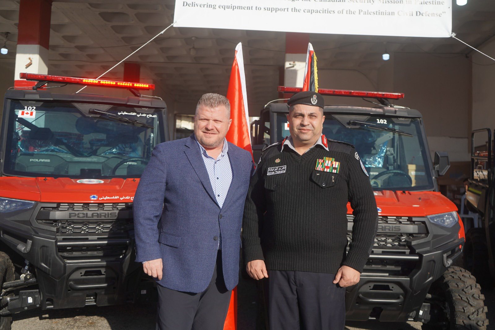 كما شكر اللواء ثوابتة قائد البعثة الكندية العميد جايسون لانجليه والحكومة الكندية على هذا الدعم مثمنا وقوفهم الى جانب الشعب الفلسطيني ودعمهم المتواصل لمؤسسات الطوارئ والخدمات الانسانية .