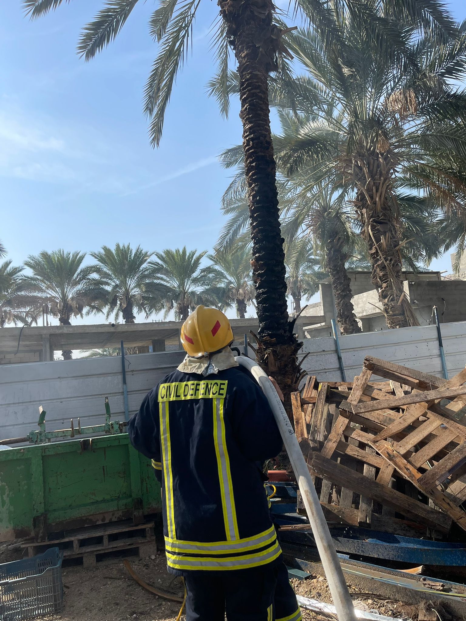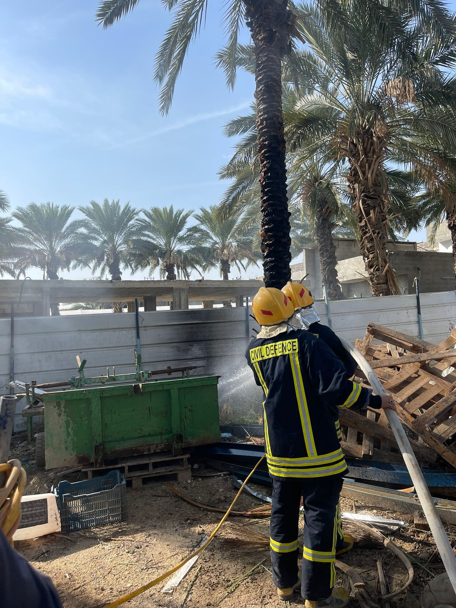 أخمدت طواقمنا في مركز الجفتلك بمحافظة أريحا والأغوار اليوم الخميس 08/01/2026 ، حريق أعشاب إمتد لداخل مزرعة بمساحة واسعة وطال عشرات أشجار النخيل بلدة الجفتلك شمال المحافظة .